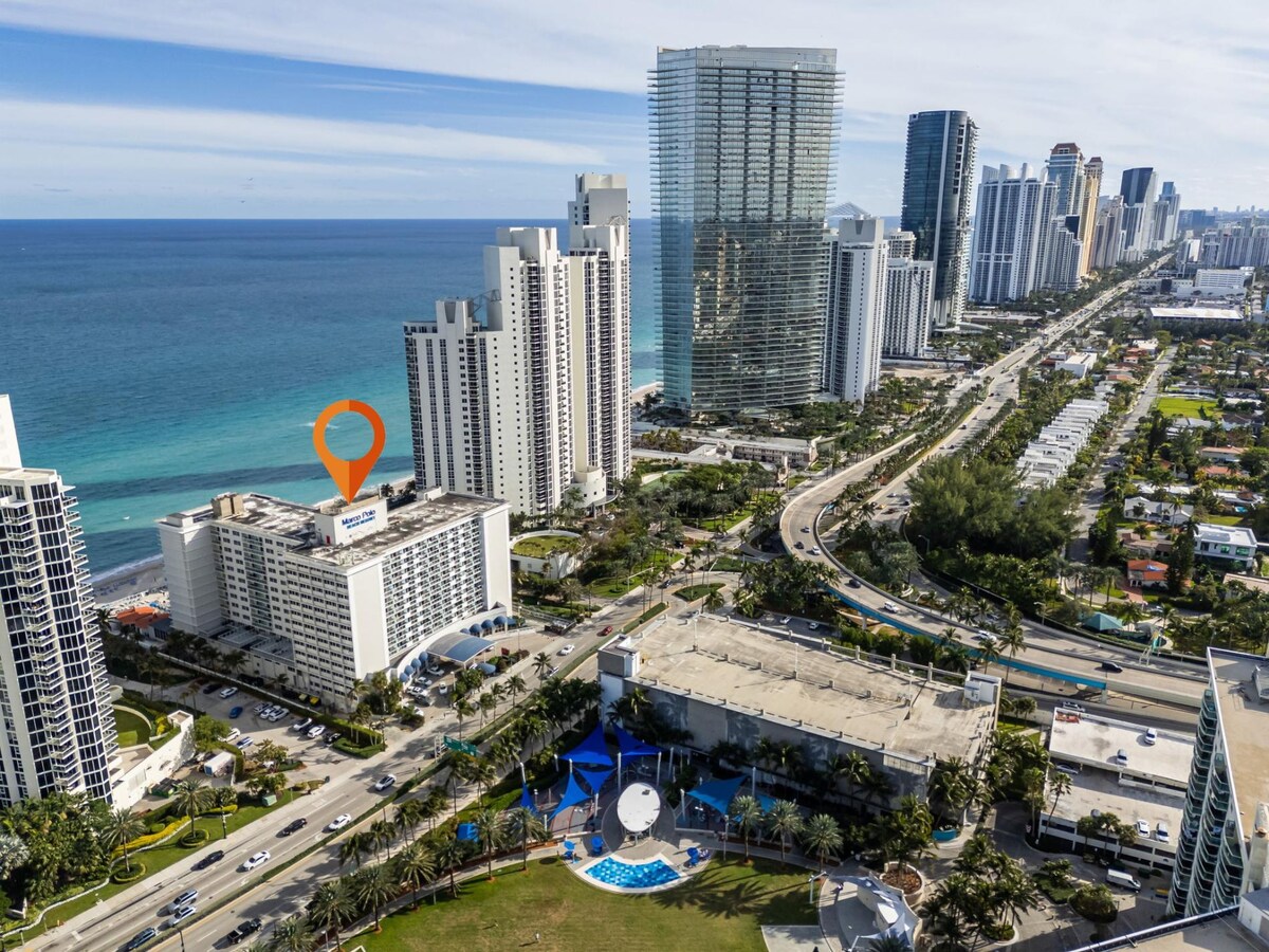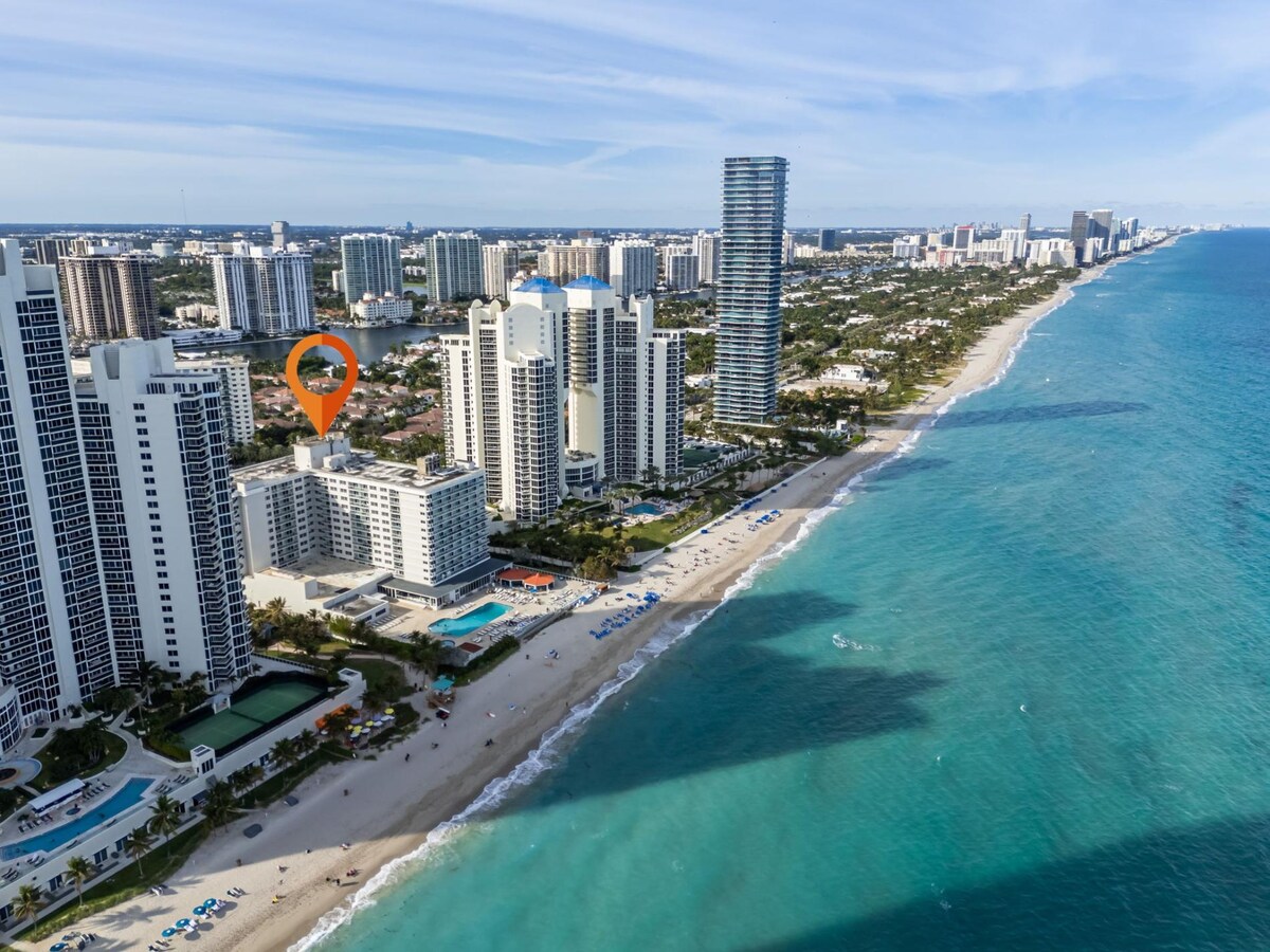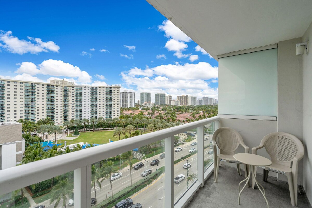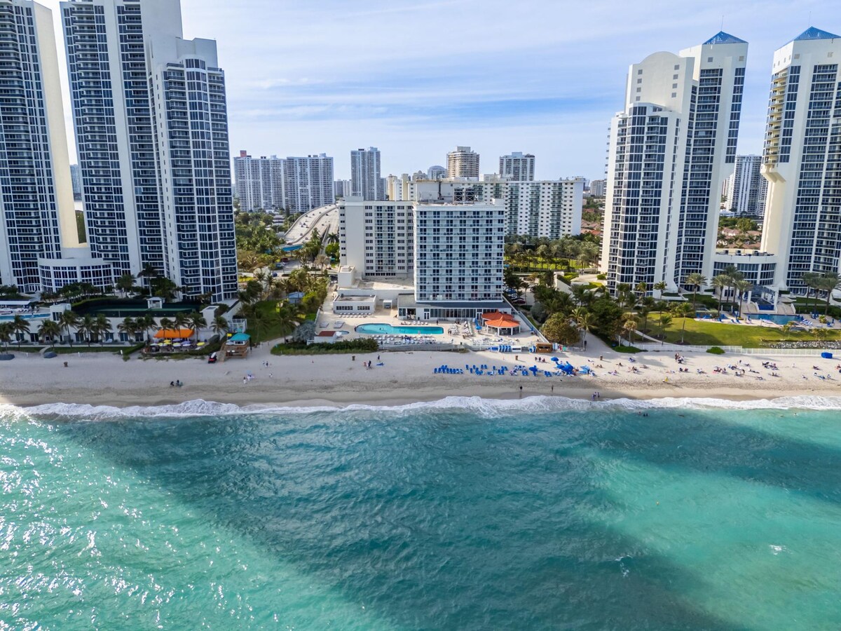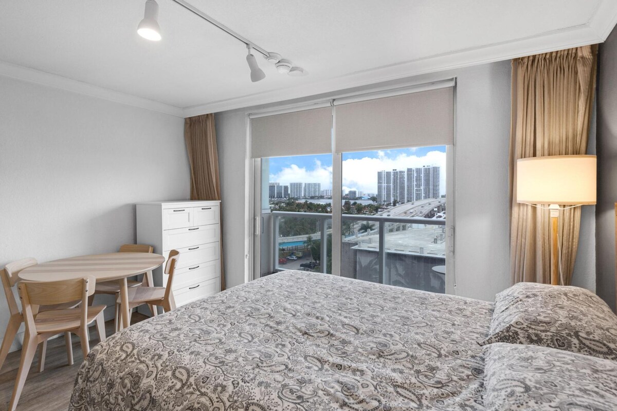This inviting studio accommodates up to four guests, offering breathtaking views of the beautiful Sunny Isles beaches.