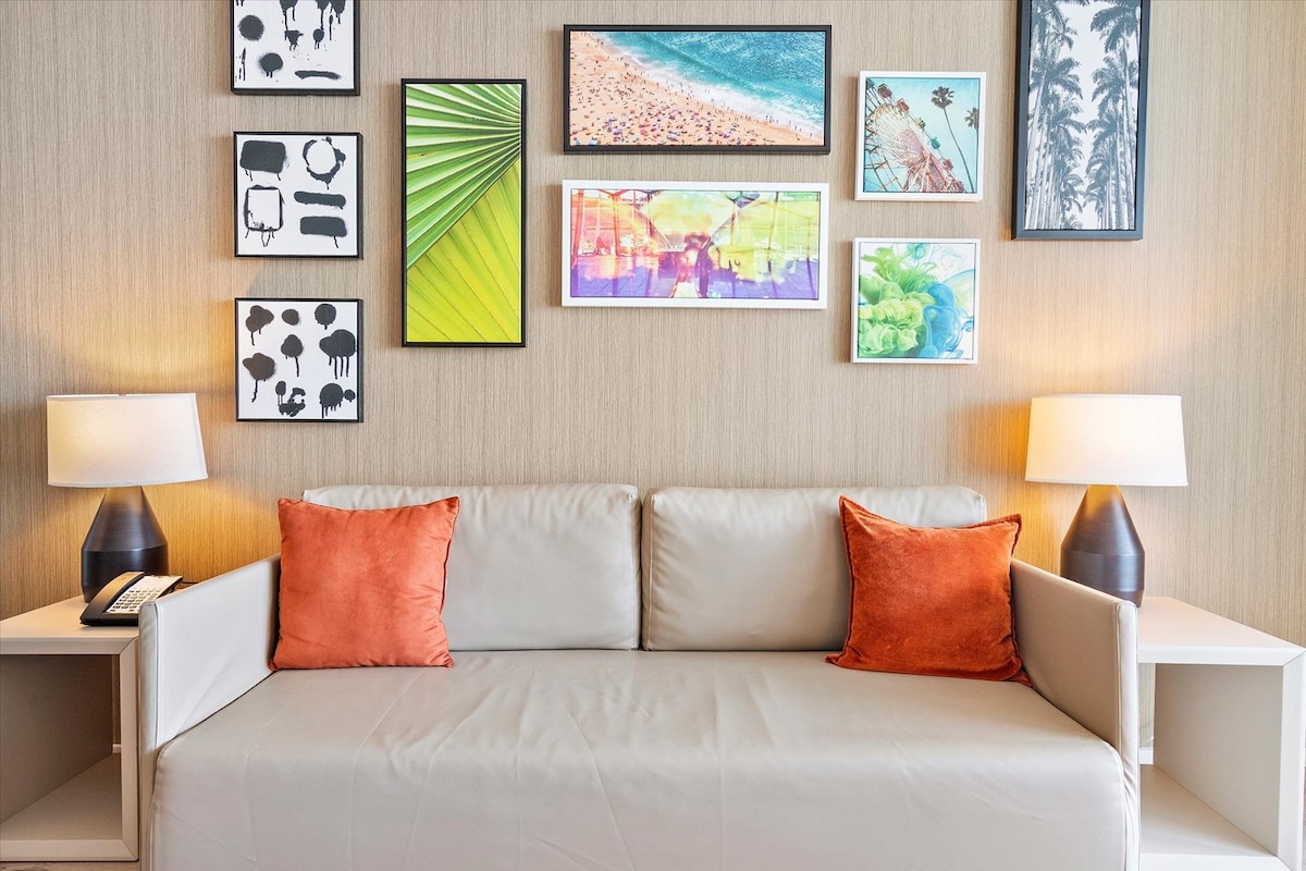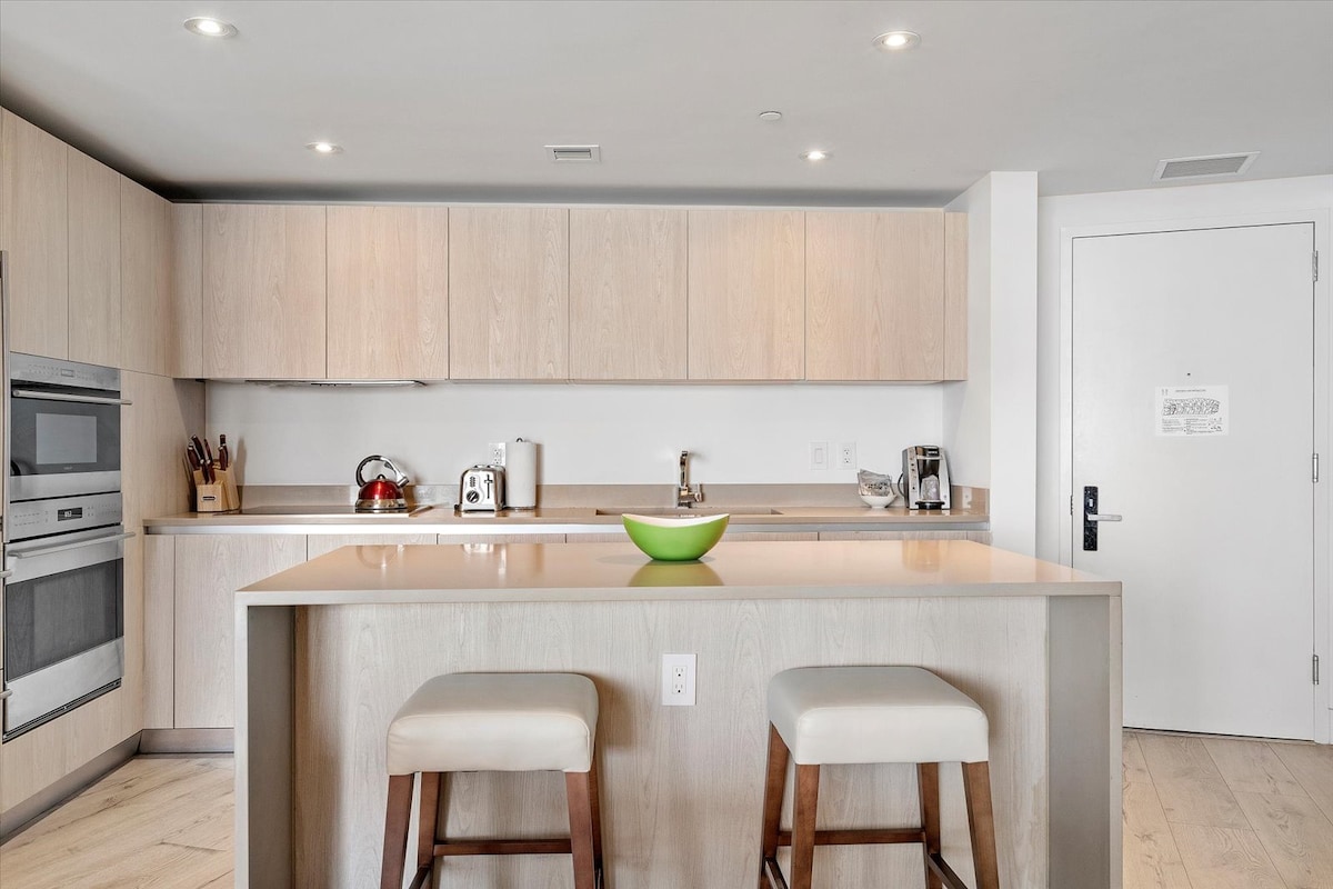 Great location, excellent amenities (bar, pool and gym), the apartment was really nice, everything works well, the place was sparkly clean and beds were comfortable. Elevators can get crowded at mid morning and late afternoon but the wait was not so bad (just a few minutes). We had a great stay at this property, recommended.