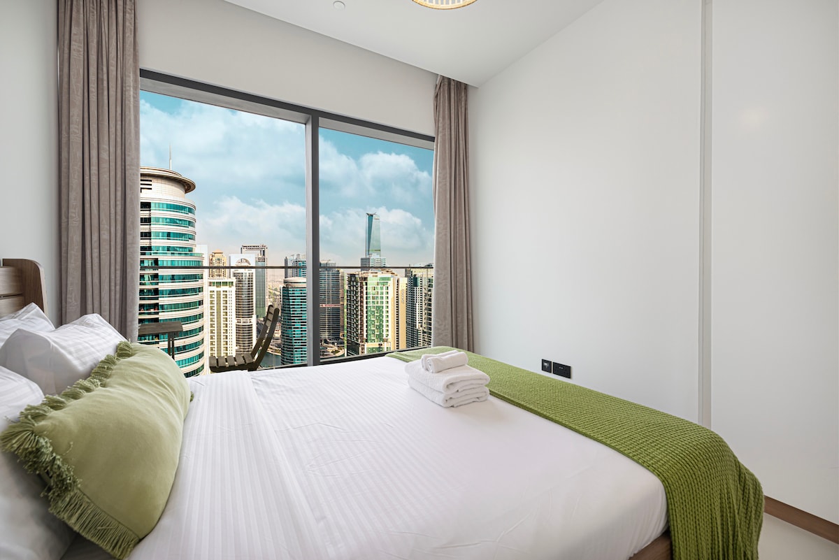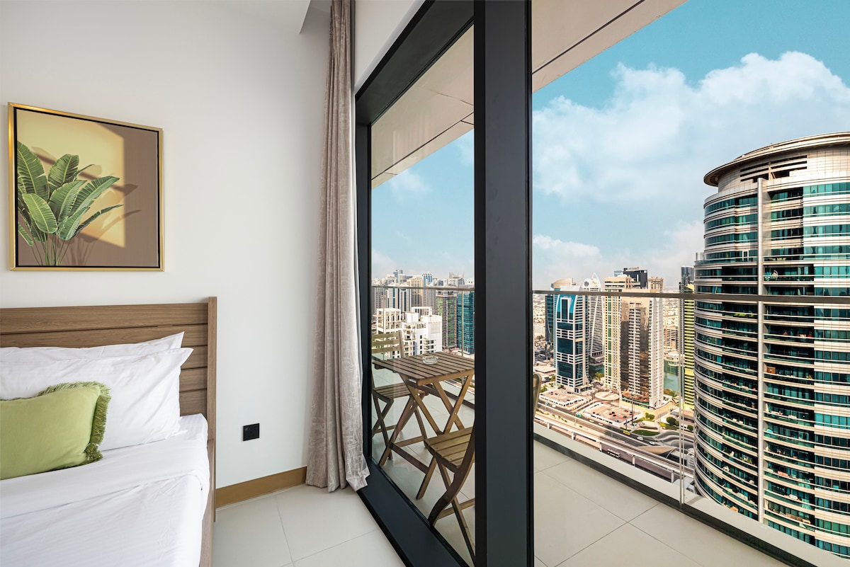 Stay in this stylish 2-bedroom apartment on the 39th floor of Vida Marina Yacht Club, offering stunning views of JLT.Perfect for couples, families, or business travelers, the apartment is fully furnished with modern decor, an open living area, and a private balcony to enjoy the skyline.