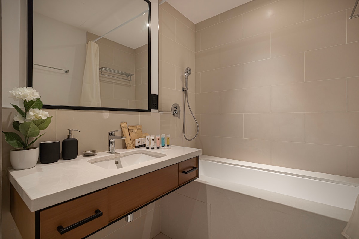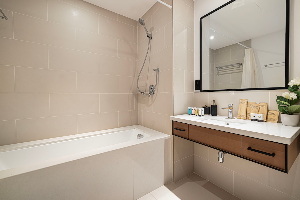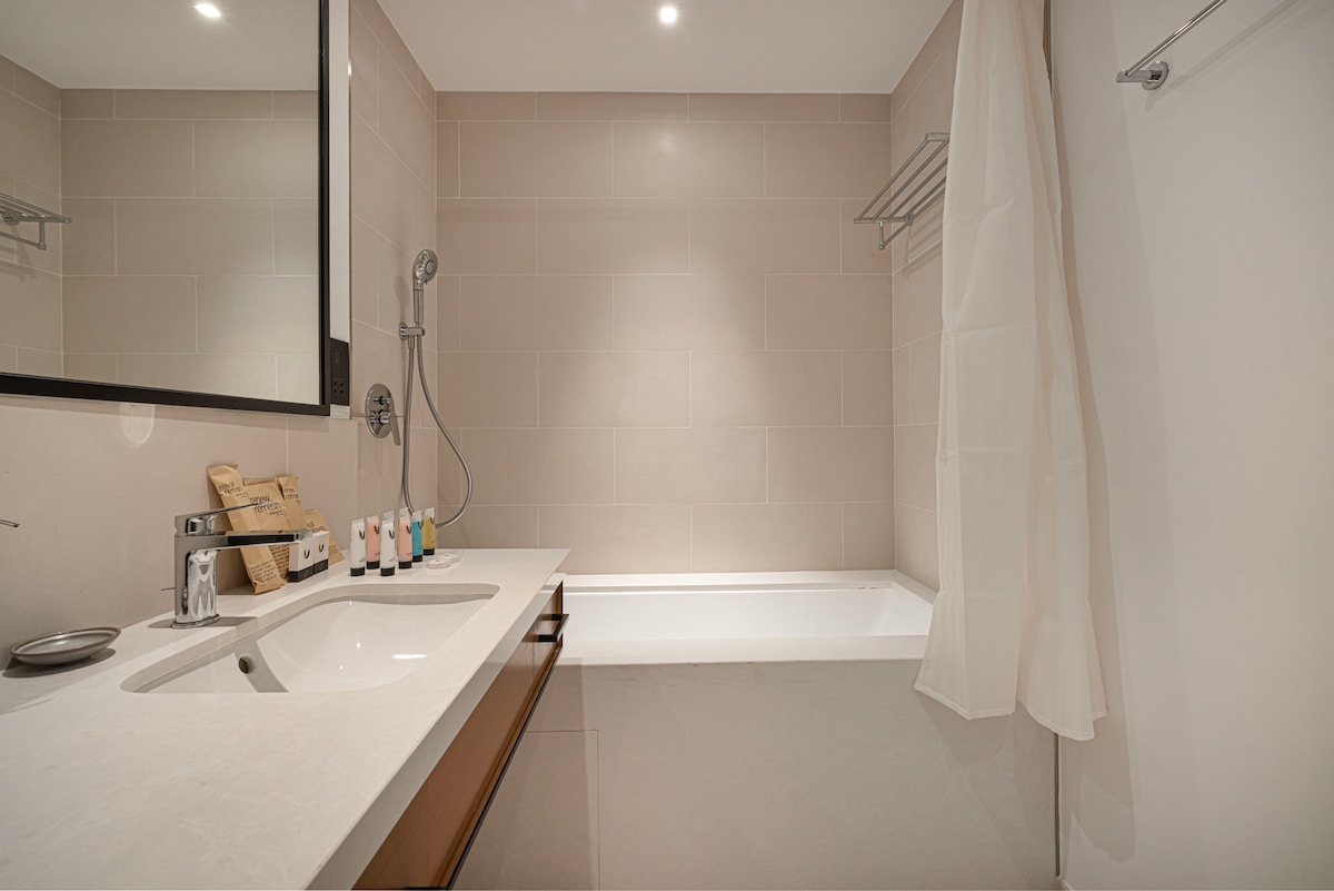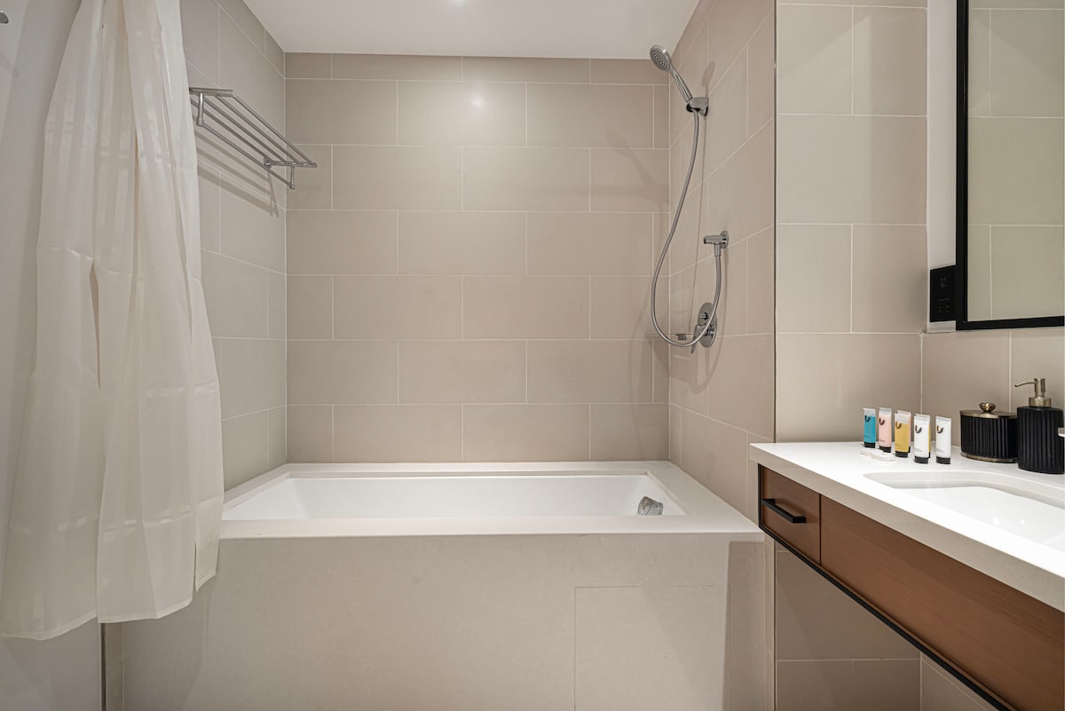 Guests will have full private access to the apartment during their stay, including the balcony, kitchen, and laundry facilities.You’ll also have access to the building’s amenities, including: