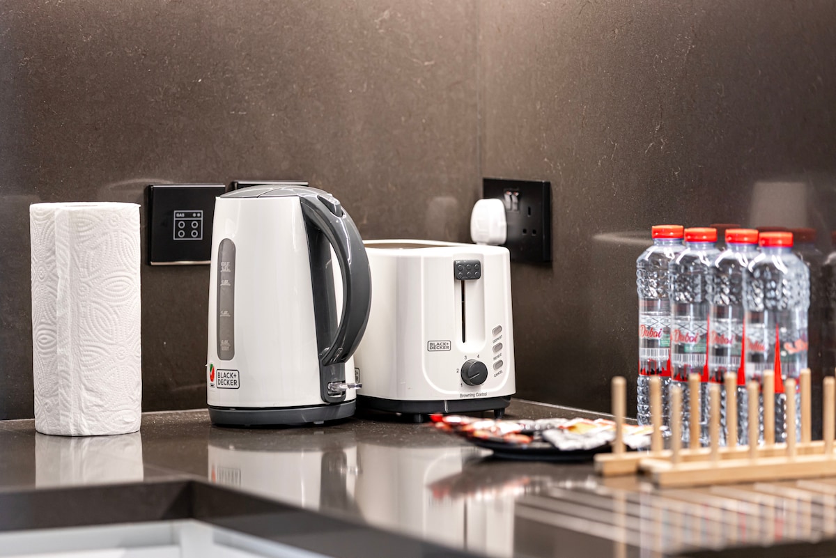 The master bedroom features a king-size bed and ensuite, while the second bedroom also has a king bed with access to a shared bathroom. You’ll have a fully equipped kitchen, Wi-Fi, a smart TV for added convenience.
