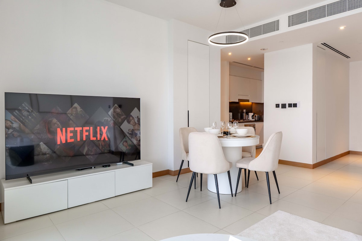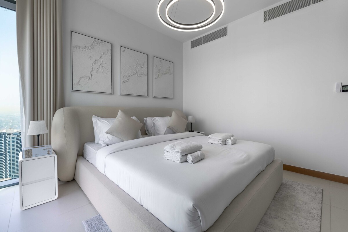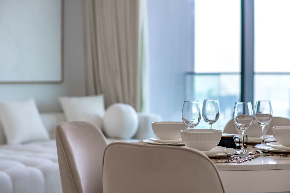 Perfect for couples, families, or business travelers, the apartment is fully furnished with modern decor, an open living area, and a private balcony to enjoy the skyline.