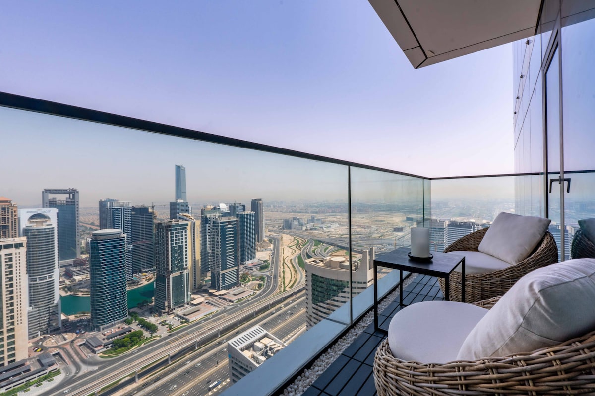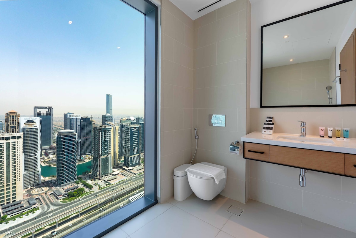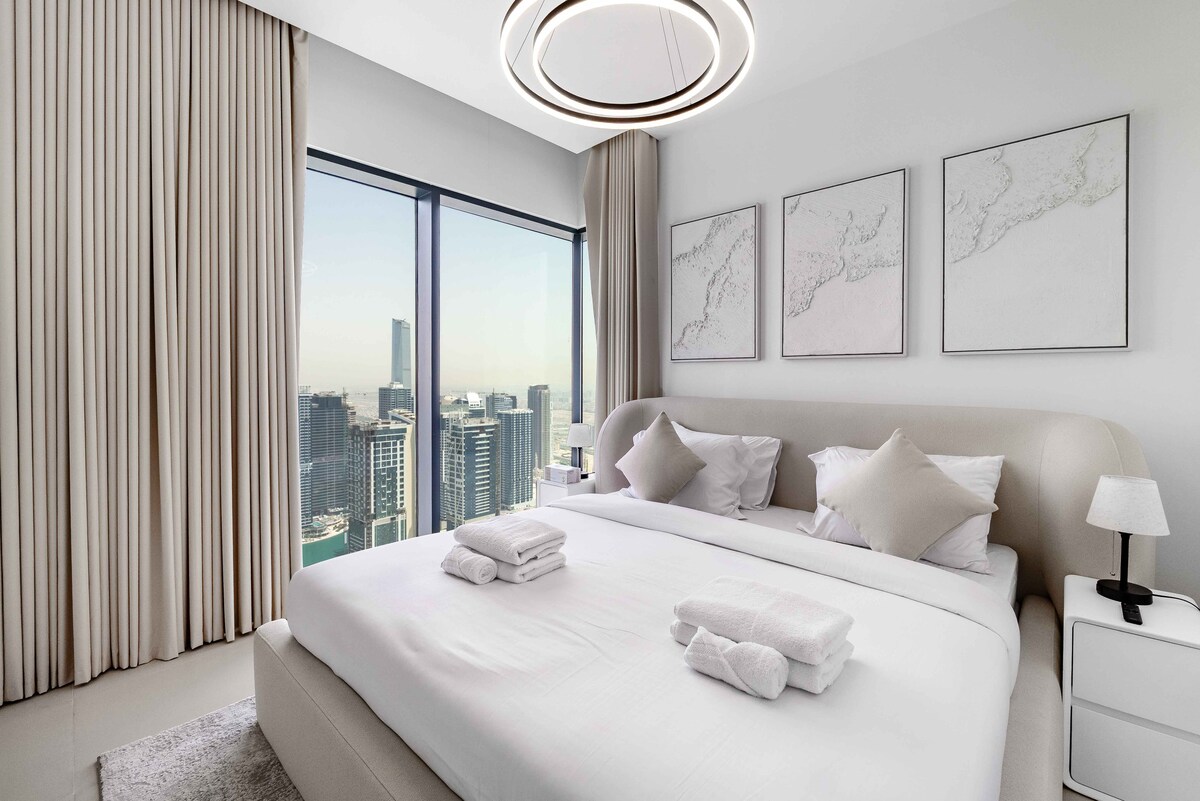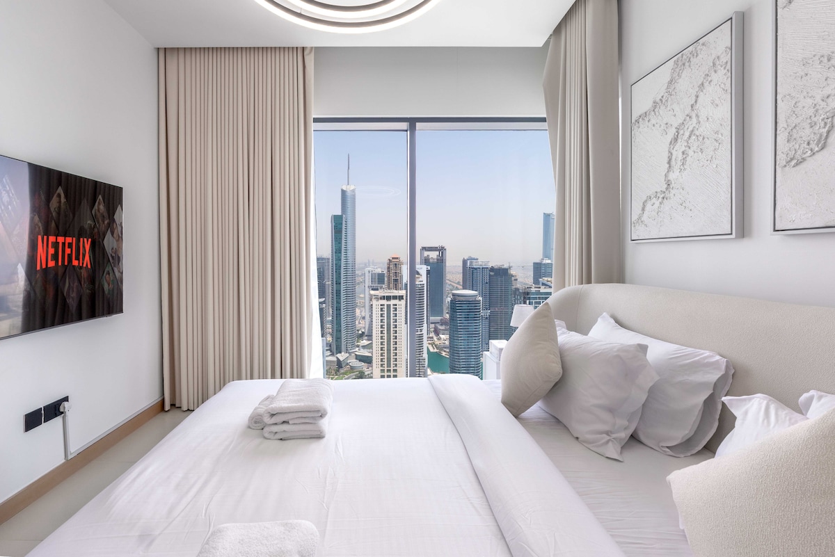 Welcome!Stay in this stylish 2-bedroom apartment on the 47th floor of Vida Marina Yacht Club, offering stunning views of Dubai Marina and JLT.