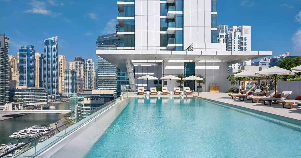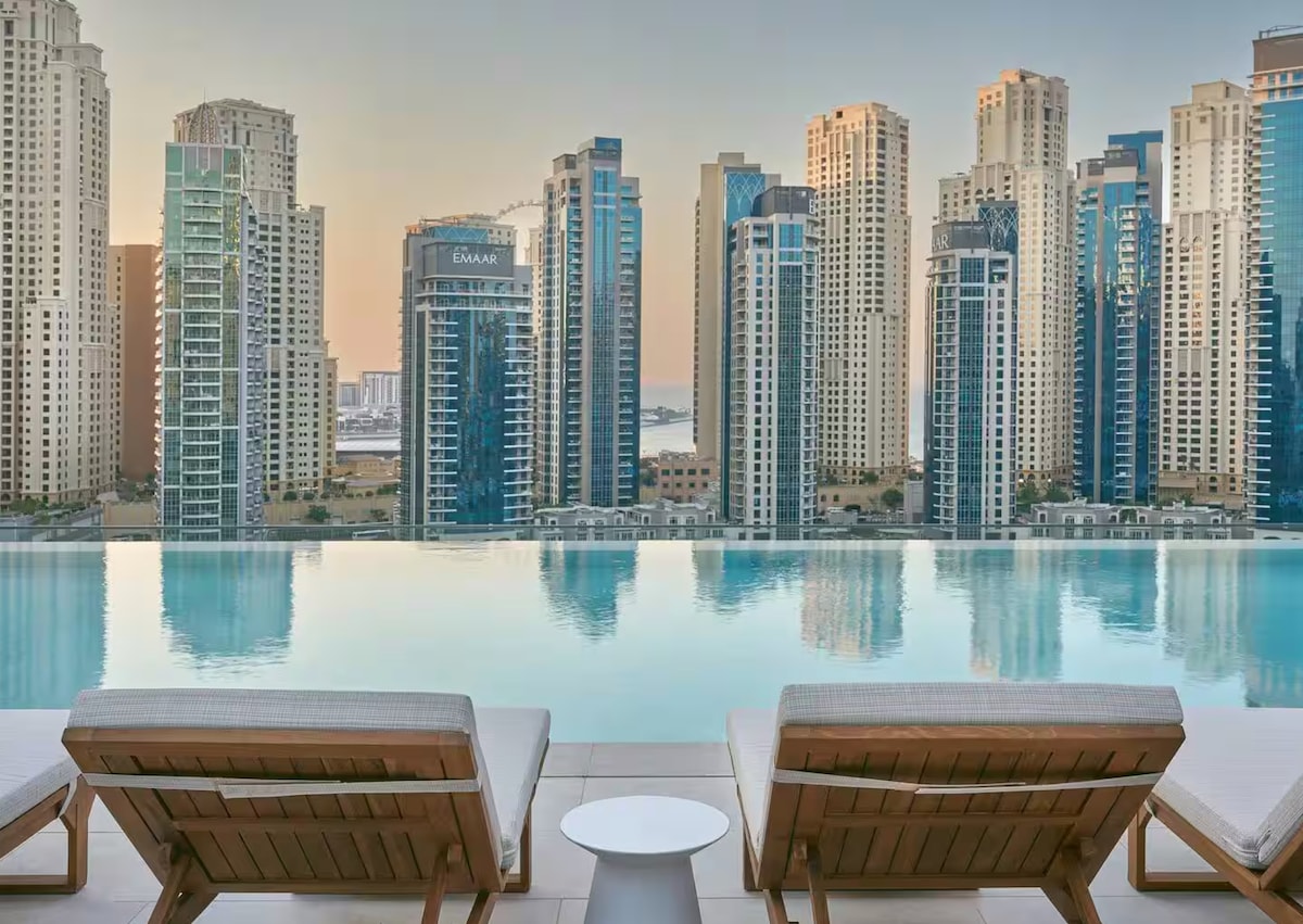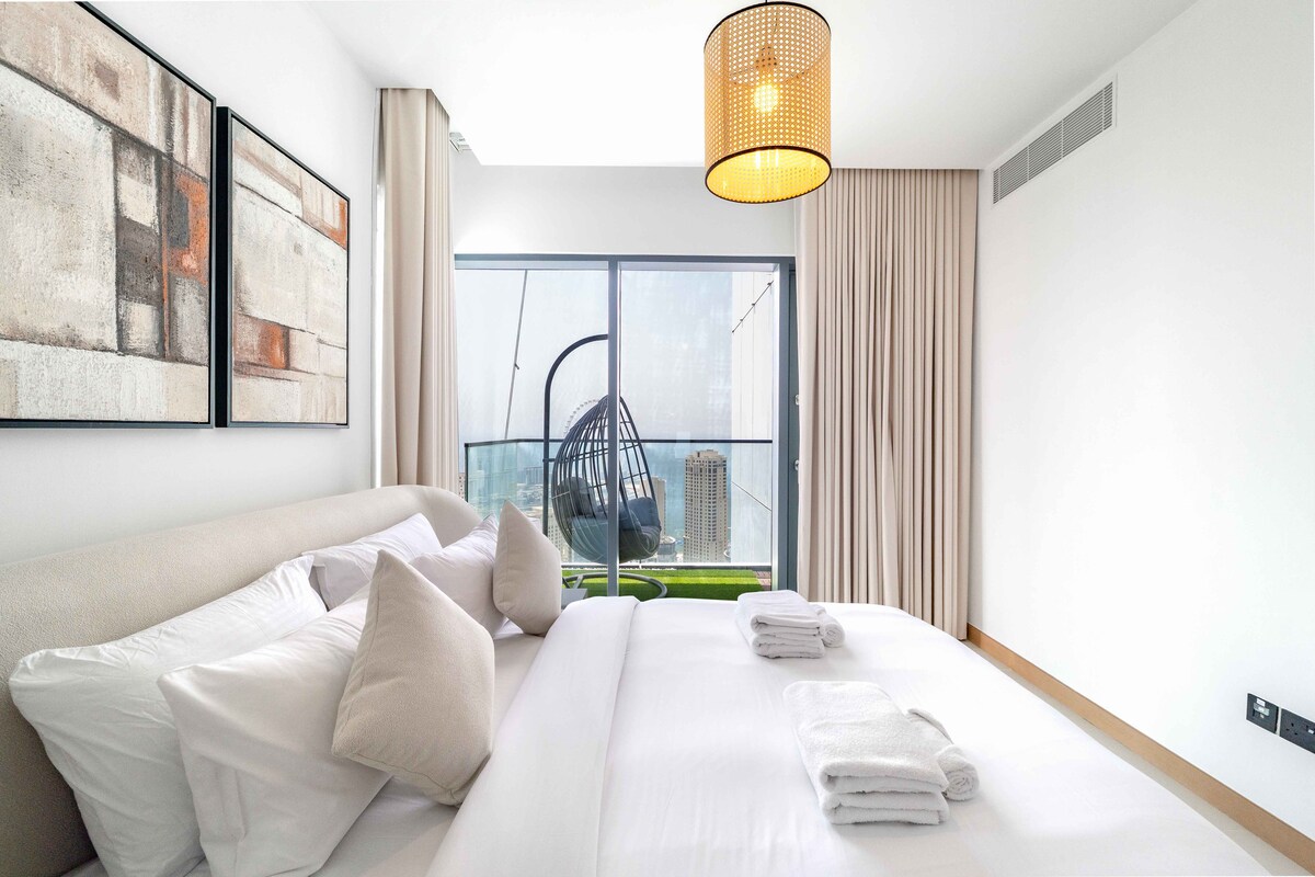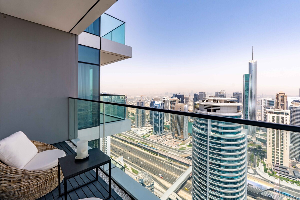 Welcome!Stay in this stylish 2-bedroom apartment on the 47th floor of Vida Marina Yacht Club, offering stunning views of Dubai Marina and JLT.