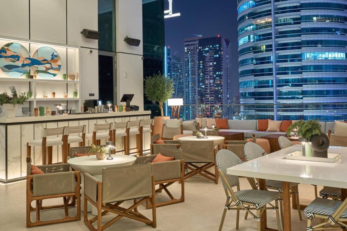 Stay in this stylish 2-bedroom apartment on the 47th floor of Vida Marina Yacht Club, offering stunning views of Dubai Marina and JLT.