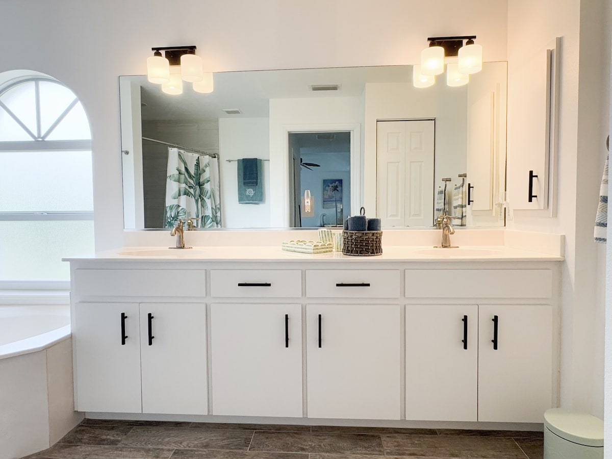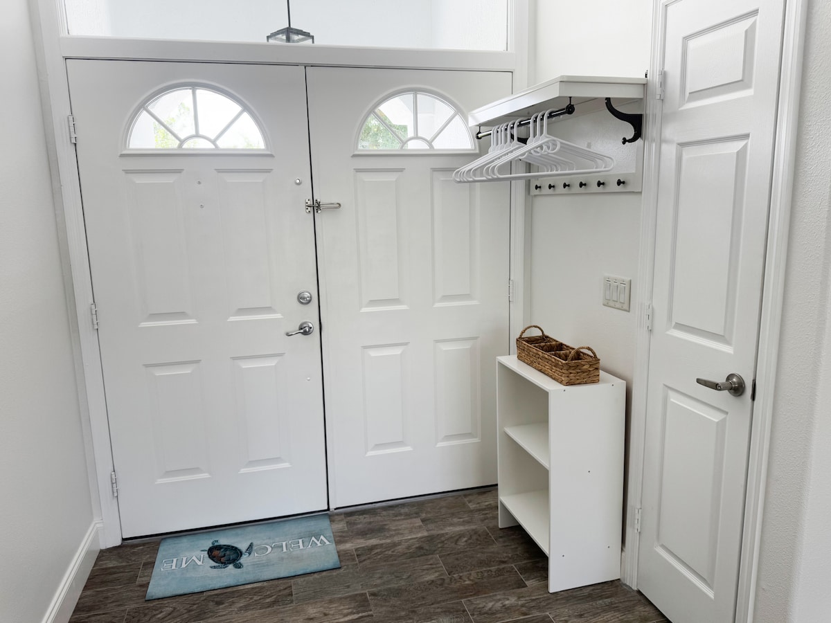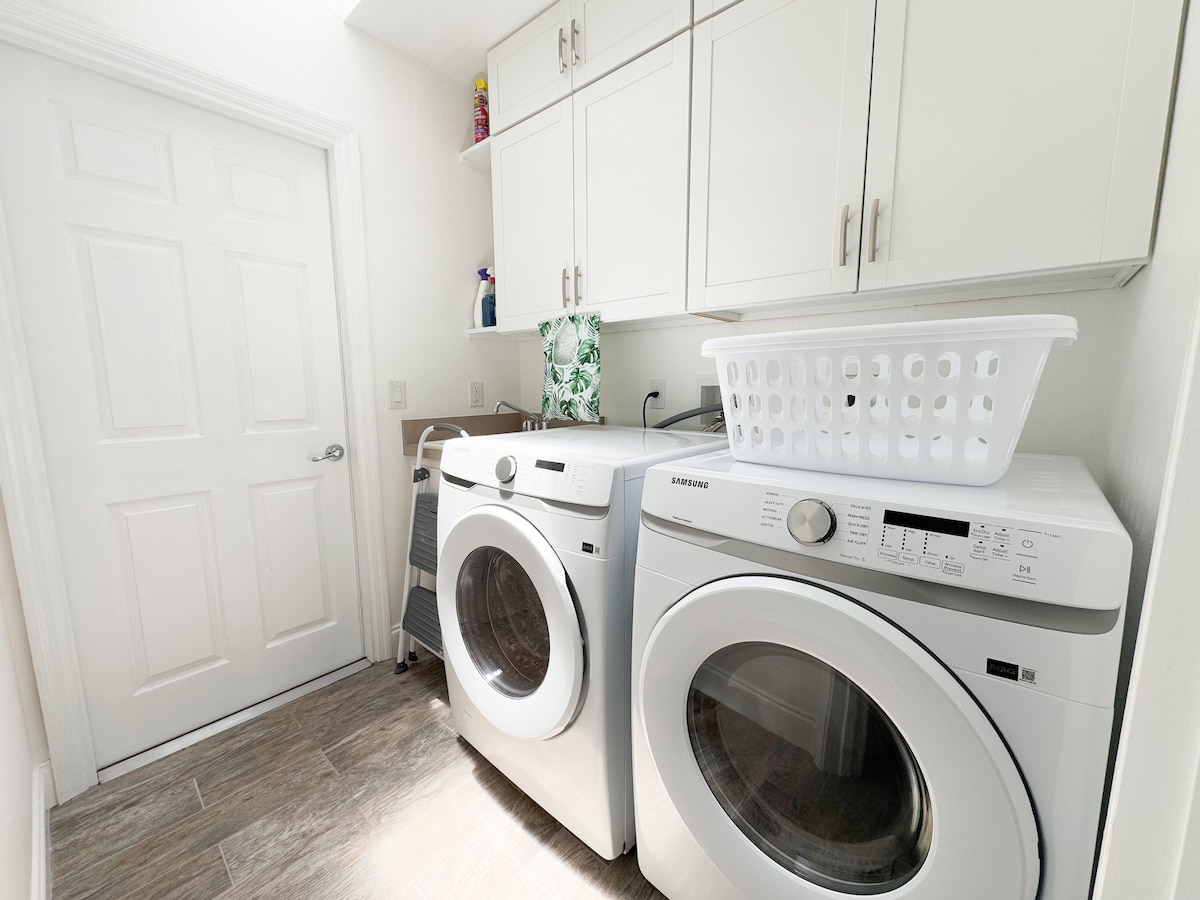Two full bathrooms provide plenty of space for everyone, and one bathroom includes direct access to the pool area—a convenient feature that makes it easy to hop in and out without going through the house.