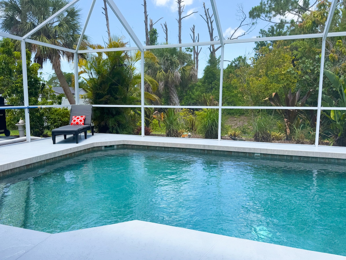 This bright 3BR, 2BA Villa in sunny Englewood offers comfort, relaxation, and a private screened pool.