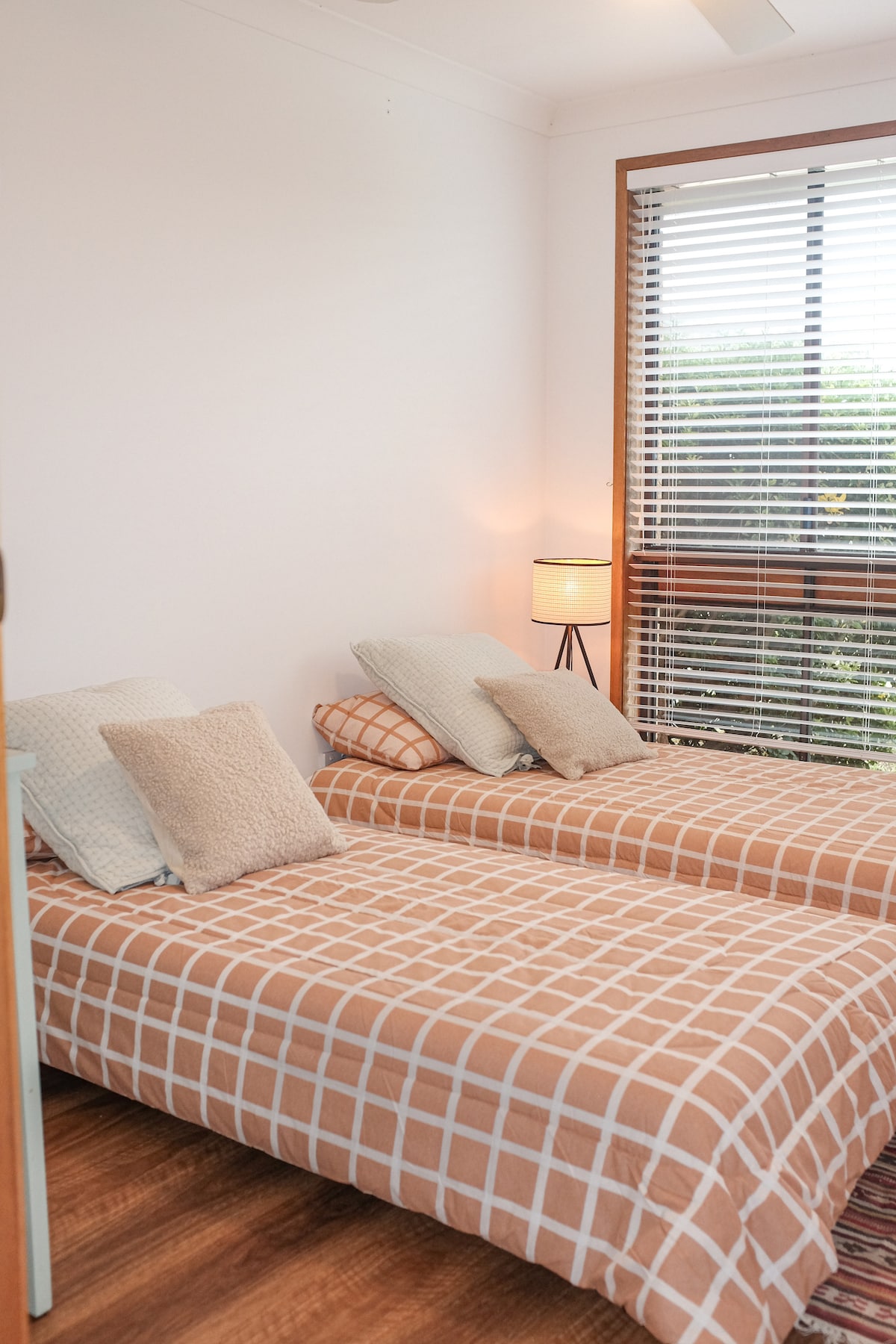 Our 3 bedroom home has a large lounge room, good size dining area and three good size bedrooms. We have one bathroom and a great area outside where you will spend the majority of your time as a family.Two of the bedrooms have queen size beds, the third bedroom has 2 single beds or can be pushed together to make a double. We also have a cot available.
