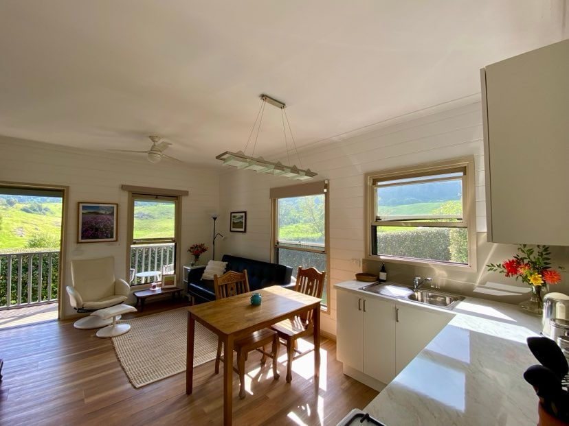 This is a fantastic place to stay in such a beautiful setting. From the moment you arrive you feel yourself relax. The balcony has a wonderful view of the Tilba Mountains and is a lovely place to sit and have a glass of wine. Also a really great place to stay if you have a dog as there's a secure fence around the cottage and plenty of room for them to dash about in Kathryn's beautiful garden. I thoroughly recommend!