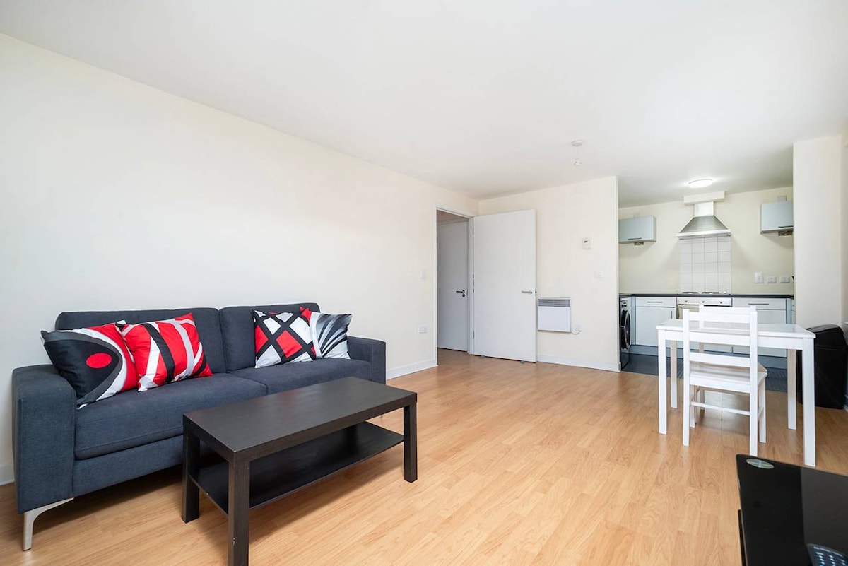This charming one-bedroom flat near London Stadium offers the perfect blend of comfort and convenience. The spacious living room is bathed in natural light, thanks to its large windows that showcase delightful neighborhood views. It features a plush, oversized sofa and a sleek TV, creating an inviting space to relax or entertain. The warm and welcoming bedroom boasts a luxurious king-sized bed and ample storage, providing the ultimate sanctuary after a busy day. The modern kitchen is fully equipped with all the essentials, perfect for preparing your favorite meals. With its practical layout and quick access to London’s top attractions, this flat is an ideal home in the heart of the city.