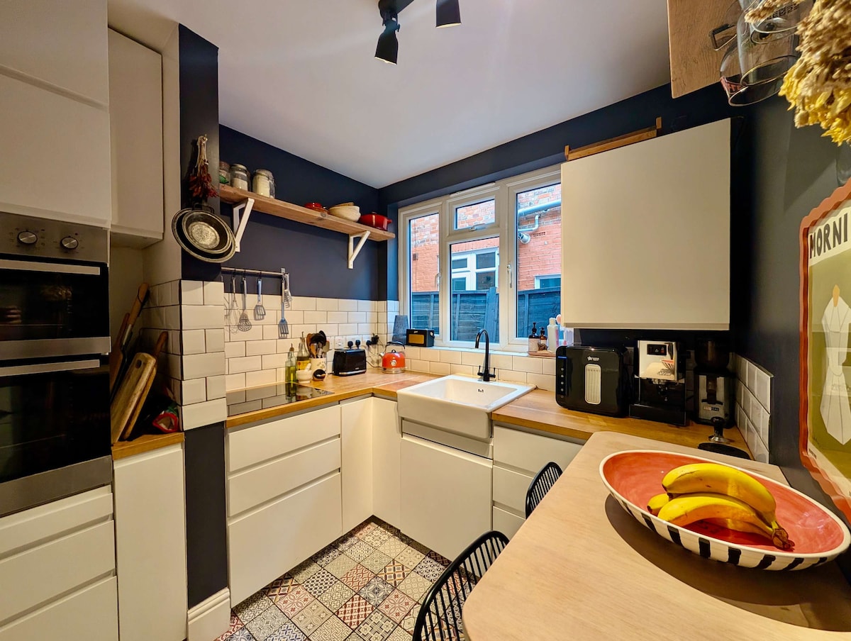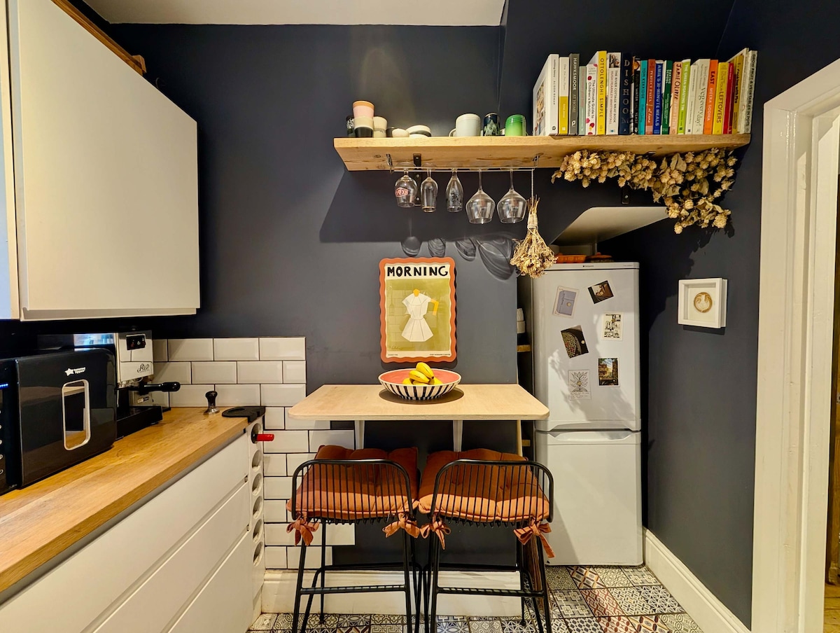 This stylish one-bedroom flat in London offers the perfect blend of comfort and charm, featuring a spacious living room with a large, cozy sofa, elegant décor, comfortable seating, and a big flat-screen TV, making it ideal for relaxation or entertaining. From the living room, step directly into the amazing backyard oasis, complete with a beautifully arranged seating area where you can enjoy a peaceful morning coffee or unwind with a glass of wine in the evening surrounded by nature. The inviting bedroom, with its generous double bed, ensures restful nights after a busy day exploring the city, while the modern, fully equipped kitchen provides all the amenities needed to make your stay truly effortless and enjoyable. The garden is shared with the neighbours, although they do not use it that often. Unfortunately parking is not available at the property. The property is up for sale and there may be viewings during your stay.Location Highlight: