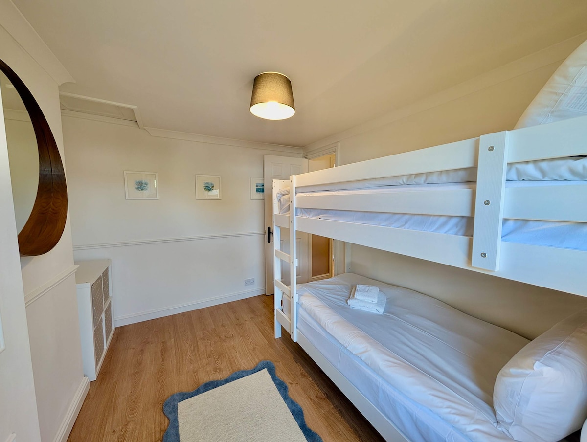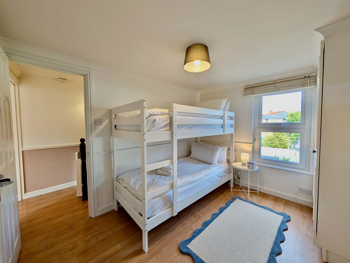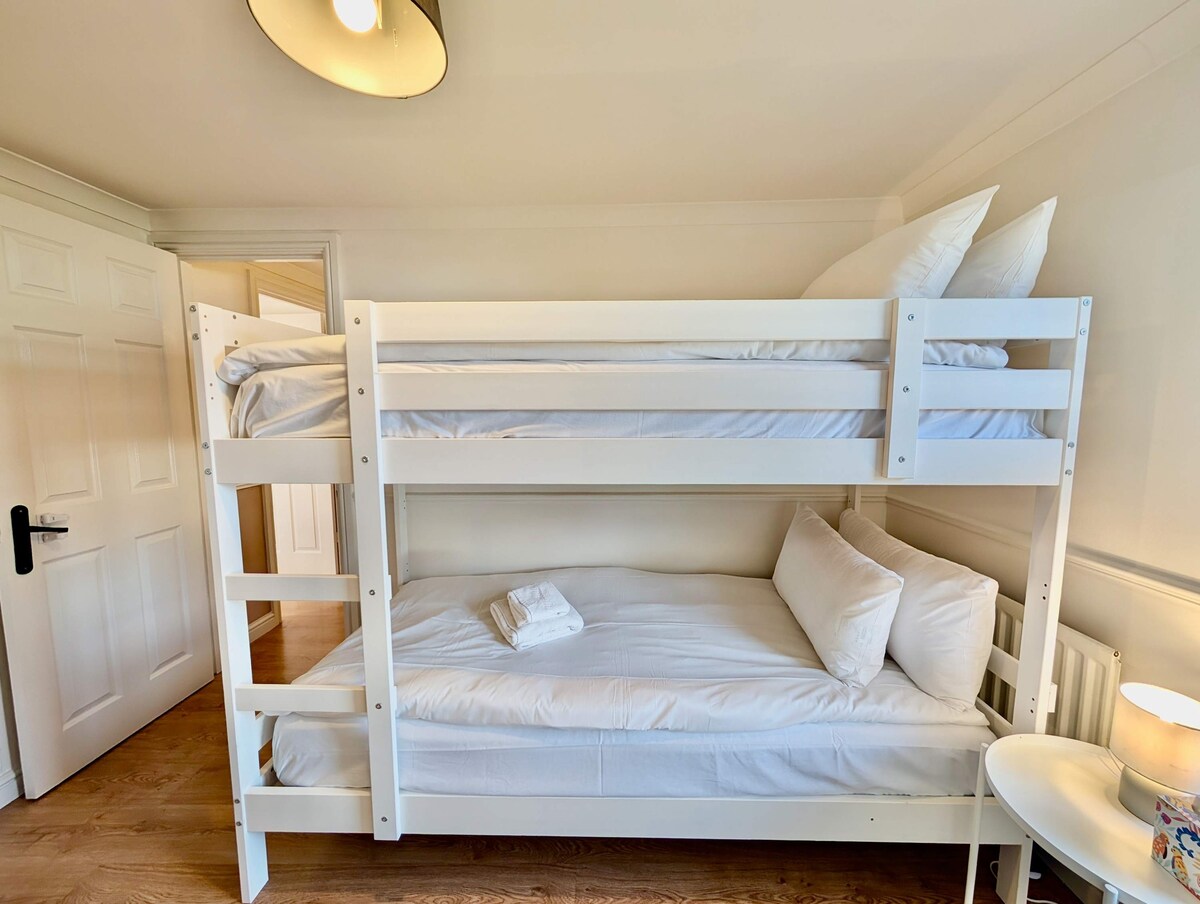 Tucked away in a peaceful and serene neighborhood, this charming two-bedroom home offers the perfect blend of comfort and elegance. The spacious living room features a big, comfy sofa bed, a flat-screen TV, and an electric fire that adds a warm, decorative touch. Large windows flood the space with natural light, enhancing the inviting dining area. The modern kitchen comes fully equipped with top-notch appliances, ideal for preparing your favorite meals. Unwind in the plush king bed or the cozy bunk beds after a full day of activities. Step outside to a beautifully kept backyard, where the greenery and soothing scent of lavender create the ultimate spot for relaxation and outdoor enjoyment. There is also a travel cot at the property, but guests would need to bring their own sheets for the travel cot.Location Highlight: