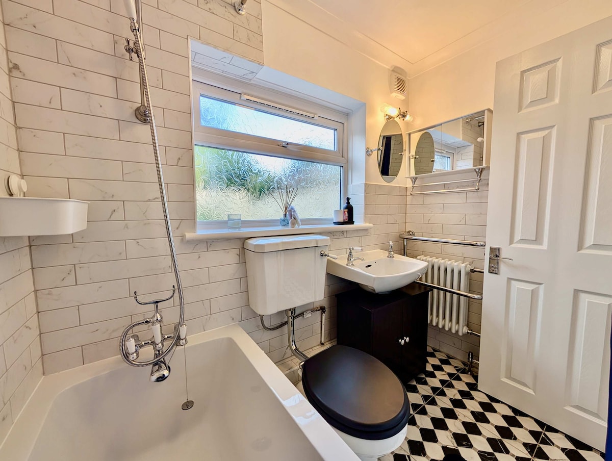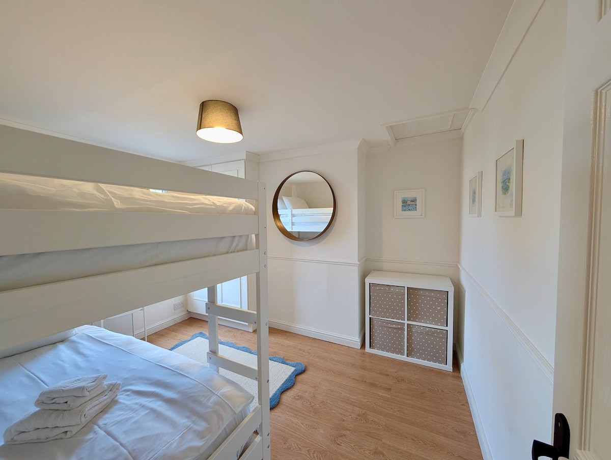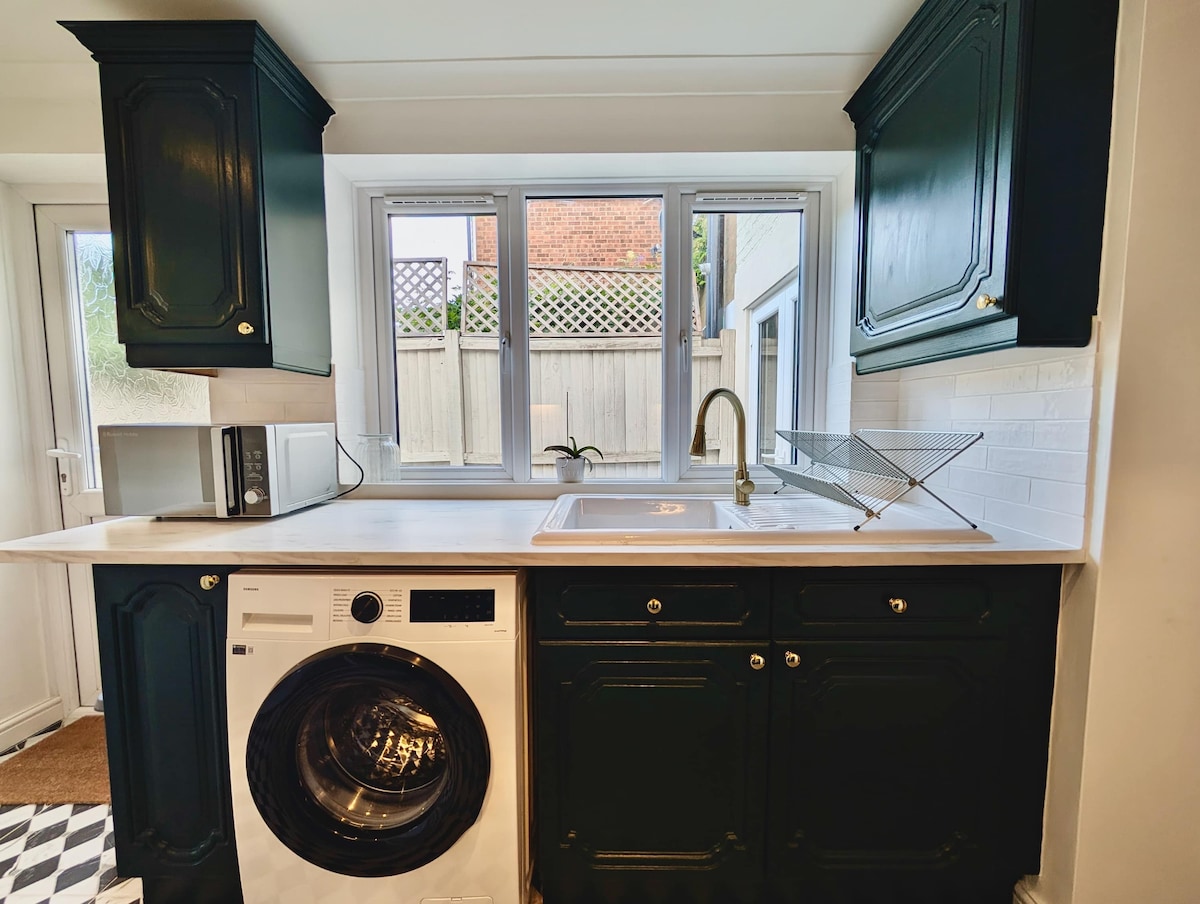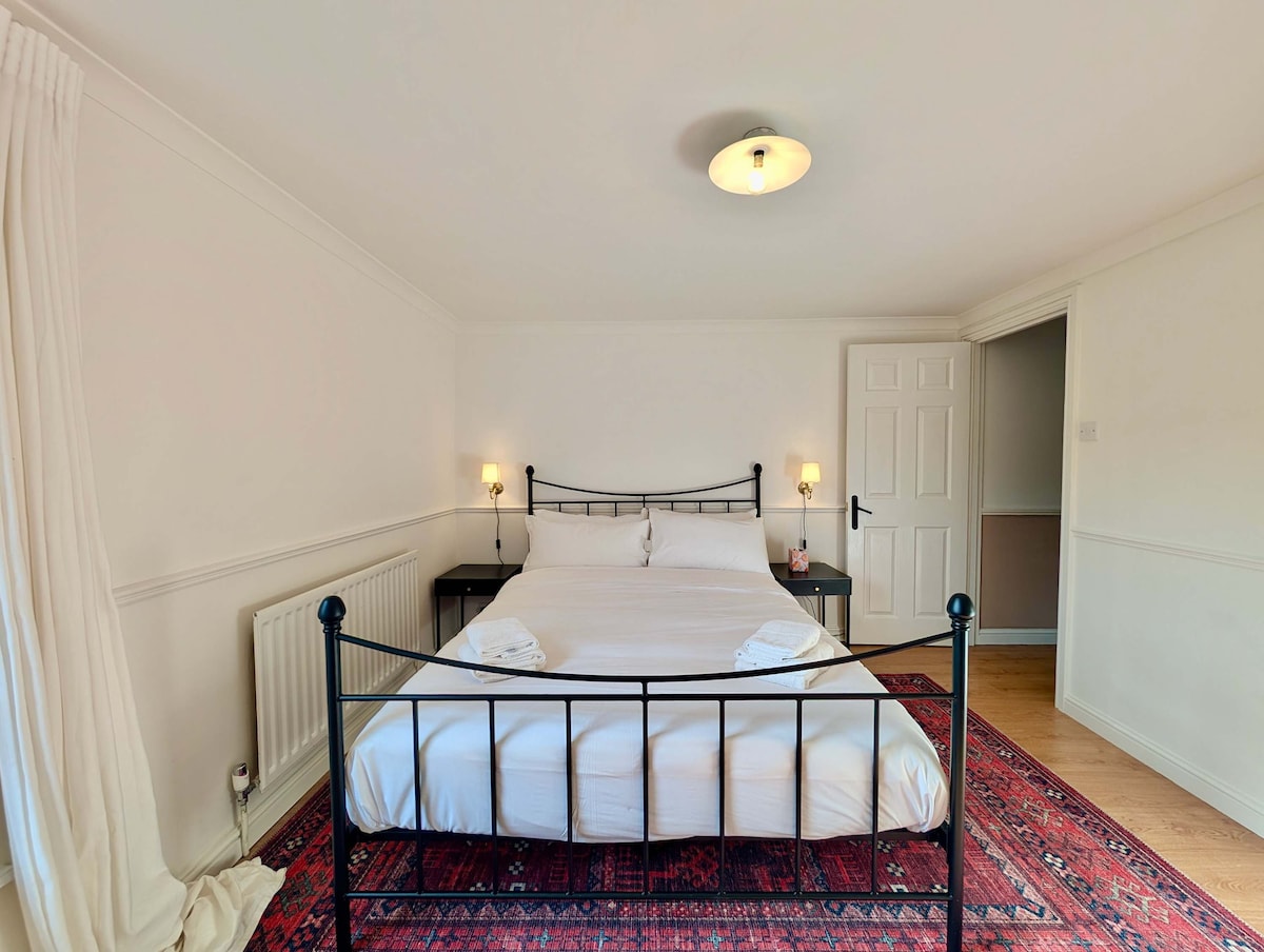 Tucked away in a peaceful and serene neighborhood, this charming two-bedroom home offers the perfect blend of comfort and elegance. The spacious living room features a big, comfy sofa bed, a flat-screen TV, and an electric fire that adds a warm, decorative touch. Large windows flood the space with natural light, enhancing the inviting dining area. The modern kitchen comes fully equipped with top-notch appliances, ideal for preparing your favorite meals. Unwind in the plush king bed or the cozy bunk beds after a full day of activities. Step outside to a beautifully kept backyard, where the greenery and soothing scent of lavender create the ultimate spot for relaxation and outdoor enjoyment. There is also a travel cot at the property, but guests would need to bring their own sheets for the travel cot.Location Highlight: