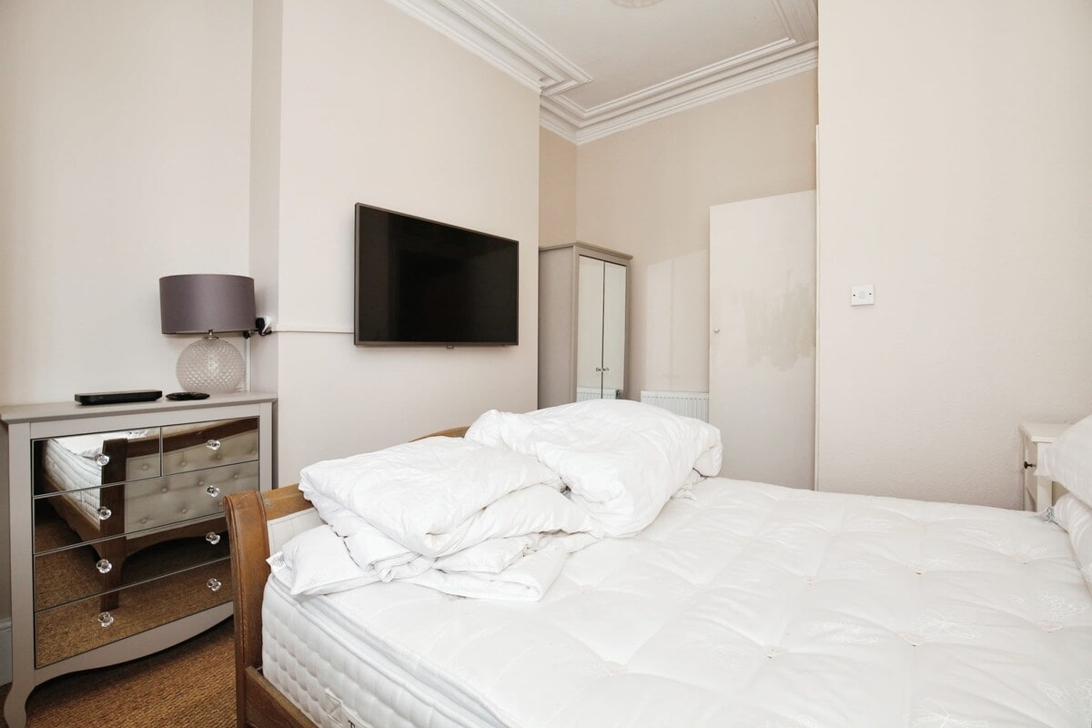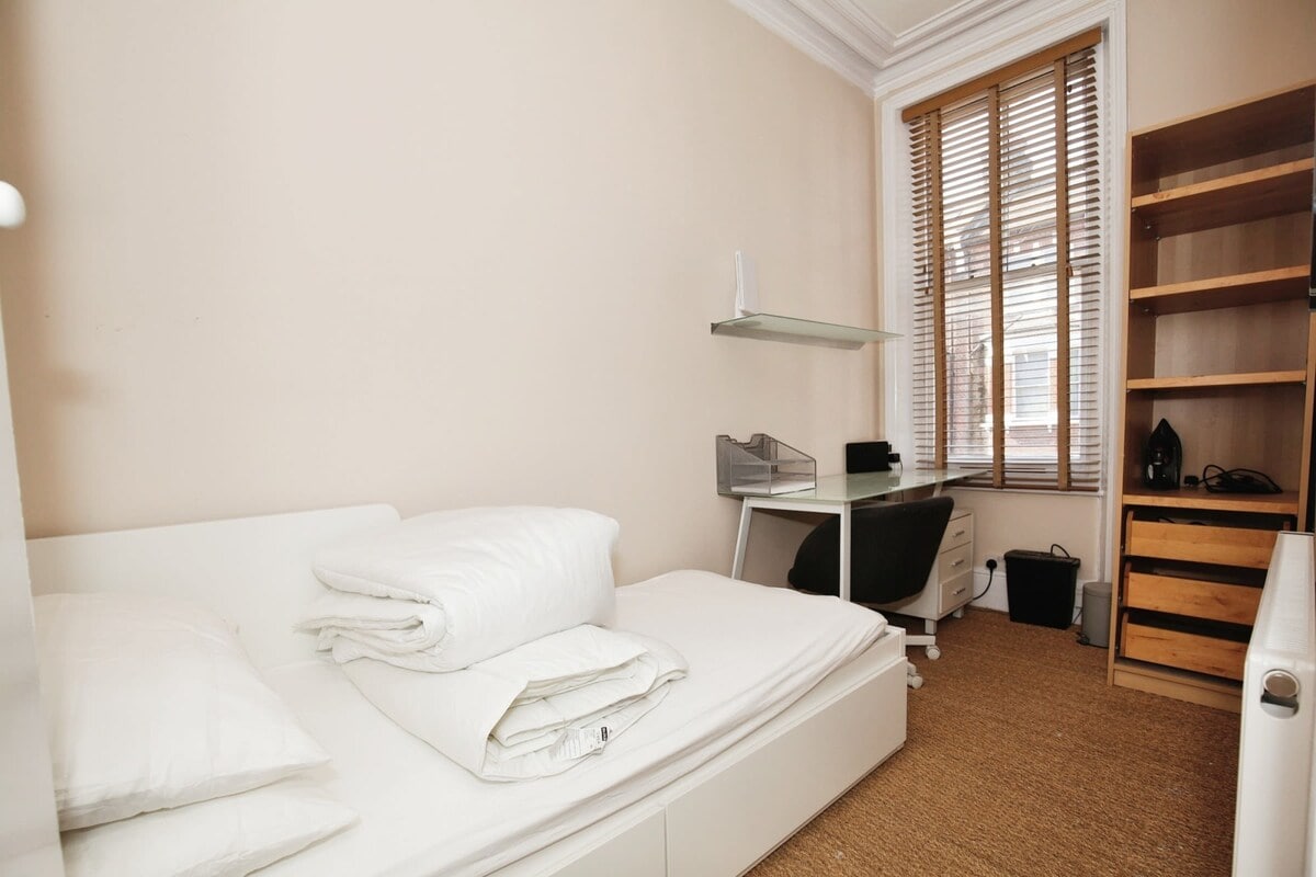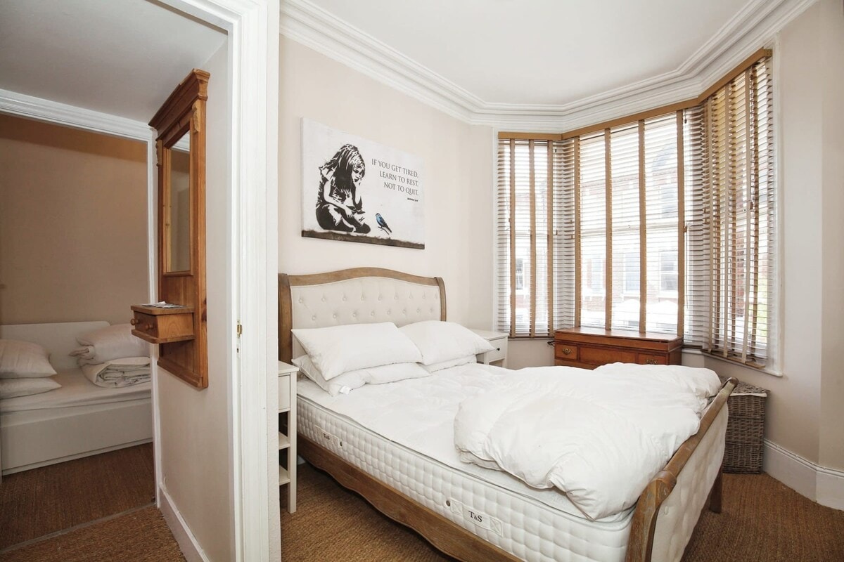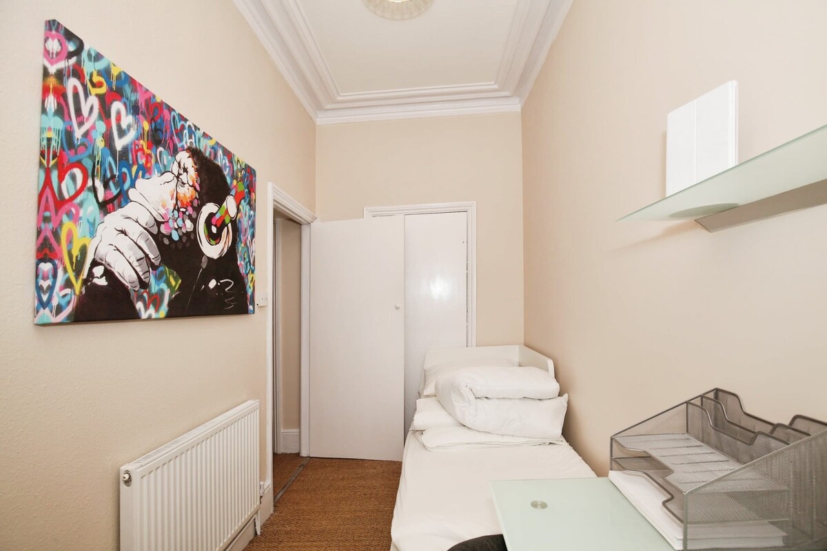 Welcome to our characterful Victorian home, steeped in history and charm, located on Hormead Road in London's Westminster! This delightful apartment offers 2 bedrooms, providing ample space for up to 3 guests. The master bedroom boasts a king-sized bed and a 55" Smart TV, complete with fresh linen for your utmost comfort. The second bedroom features a single bed and a dedicated work space, perfect for business travelers needing a convenient work-from-home setup.Relax in the inviting living room, furnished with comfortable sofas and a 65" HDR Smart TV. The room is bathed in natural light, thanks to a large mirror that reflects illumination throughout the space. Please note that the entrance area of the living room has creaky Victorian floorboards, which add a touch of vintage charm.