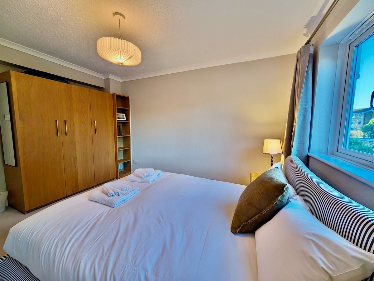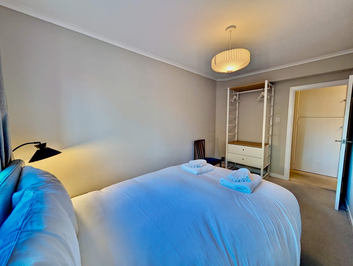 This stylish two-bedroom flat, nestled near the scenic Thames River in London, offers a perfect blend of comfort and contemporary living. The spacious living room is designed for unwinding, featuring a large, plush sofa, a big flat-screen TV, a generous dining table, and expansive windows that flood the space with natural light. The modern kitchen comes fully equipped with high-quality appliances, ideal for preparing your favourite meals with ease. Both bedrooms boast luxurious double beds with plush bedding, providing a peaceful retreat after a day of exploring the city's vibrant sights and sounds.Location Highlight: