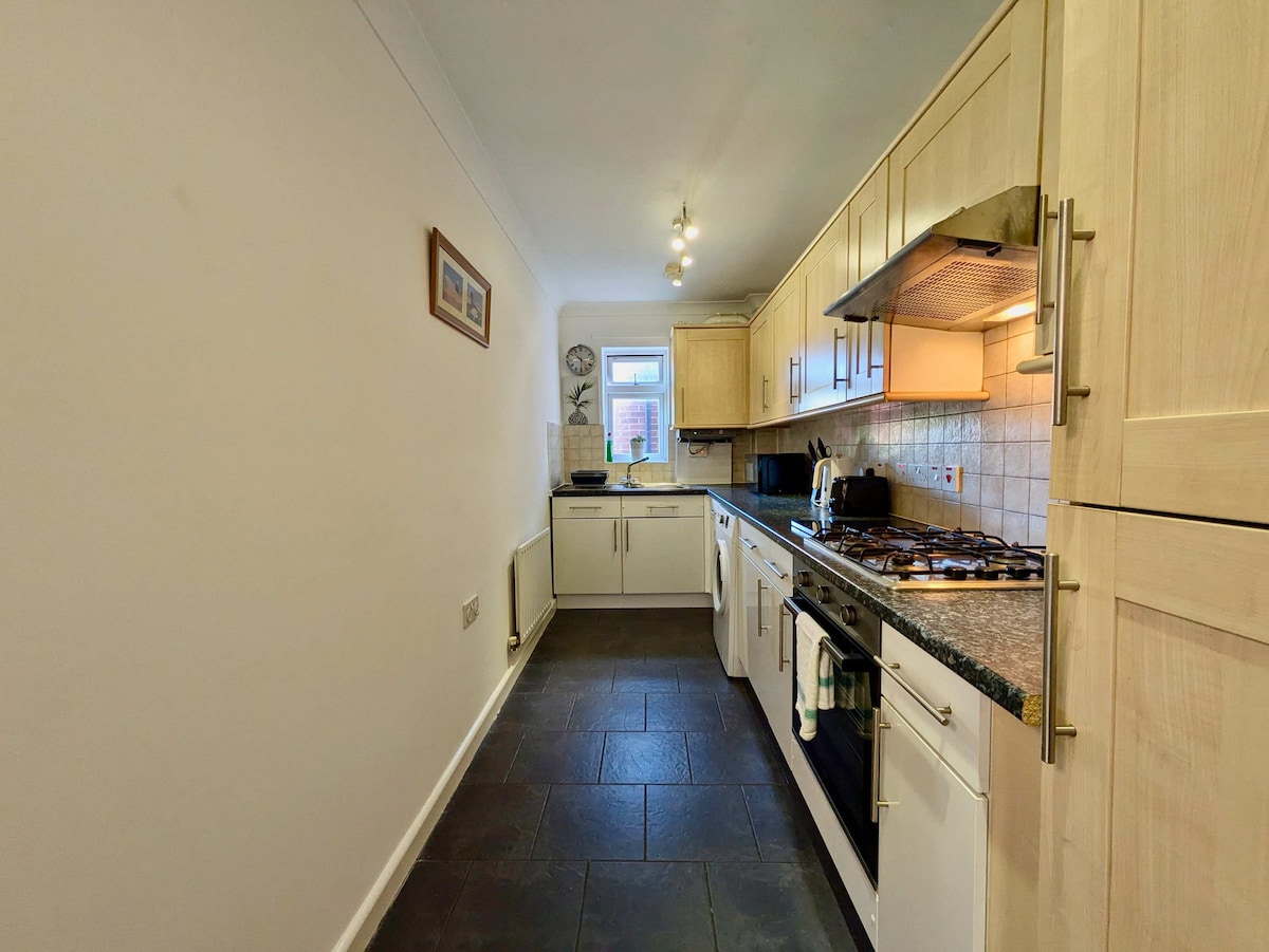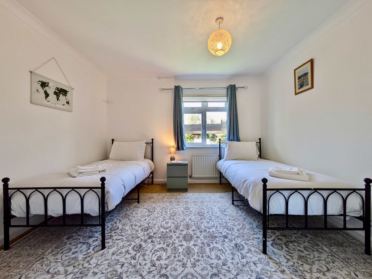 The flat features a spacious living room with two comfortable sofas, a flat screen TV, and abundant natural light. The modern, fully equipped kitchen comes with all the amenities needed for a comfortable stay. The bedrooms are designed for relaxation, featuring a plush king-sized bed in one room and two cozy single beds in the other, with plenty of storage. Situated in a peaceful neighborhood, the flat is close to parks and recreational activities, truly making it an ideal retreat for any visitor.