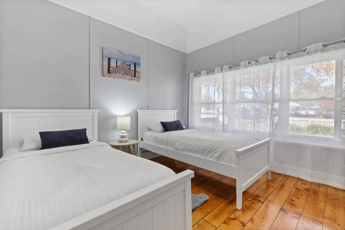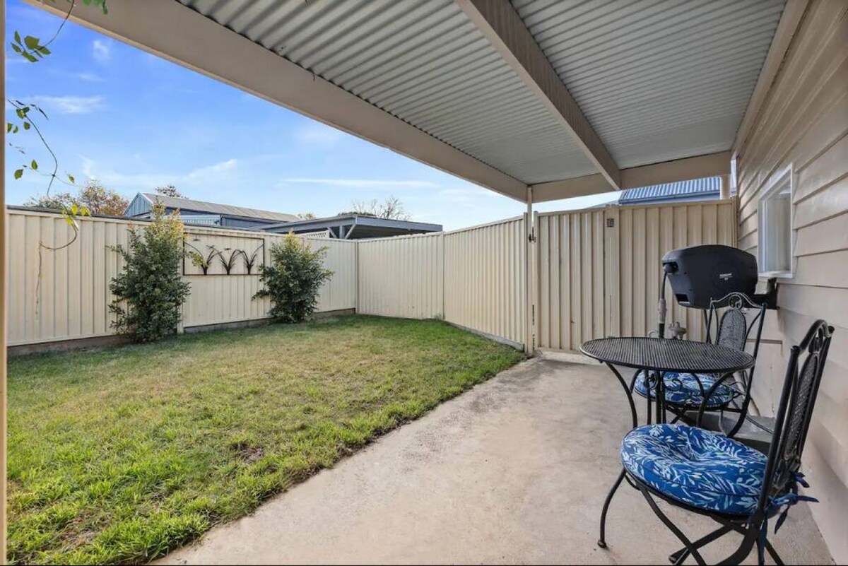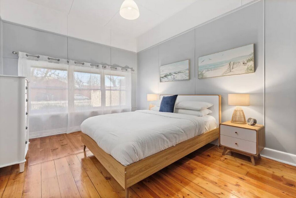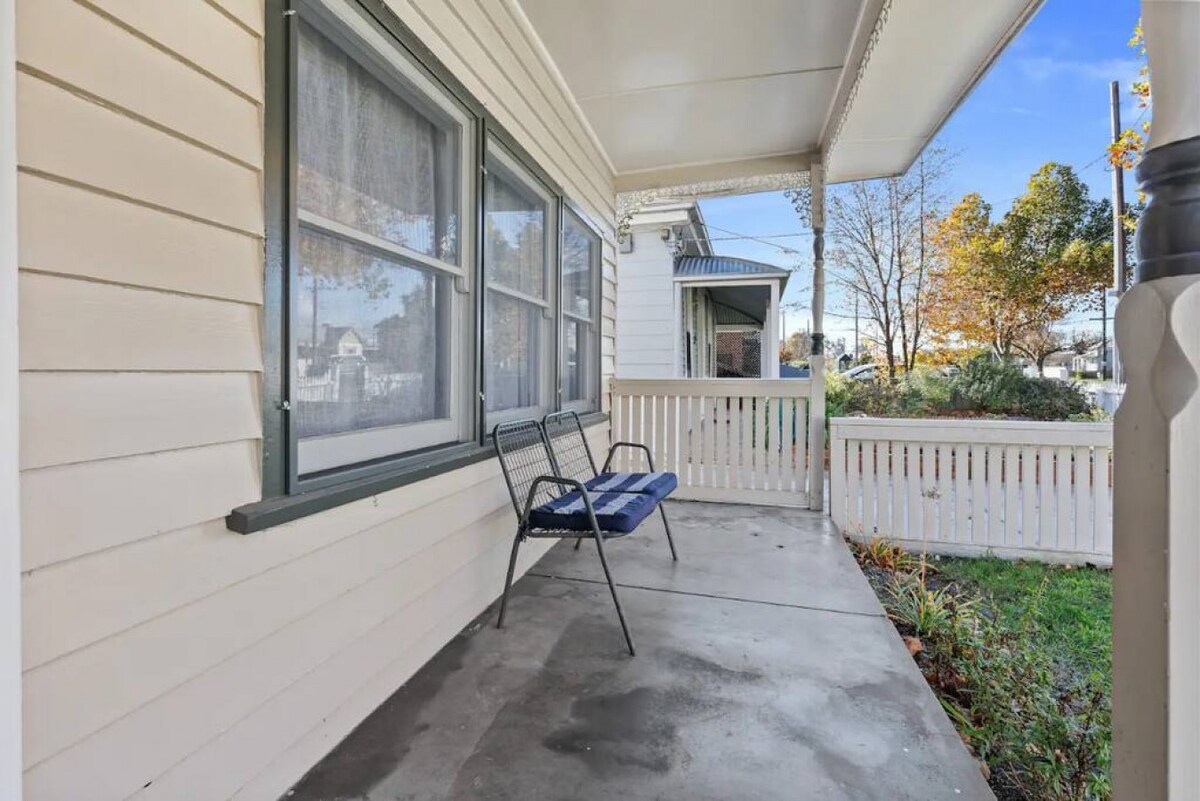 Peacefully nestled in the suburb of Redan, this cottage is sure to have you feeling warm and cosy for your country escape. It reveals lovely character details, including lace iron, timber floors and high ornate ceilings. Down the front path and you’ll arrive at the front veranda, where a seating nook encourages you to sip your morning coffee over a good book.Through to the light-filled living room, it features a six-person dining table where guests can come together for a meal at home or use as a dedicated workspace. There is generous sofa seating with central heating and a TV catering to your evening entertainment. The kitchen is compact, but includes everything you’ll need for cooking at home, including an oven, stove and microwave. Out to the leafy backyard and you’ll find another alfresco seating area and grassy lawn where kids can play.