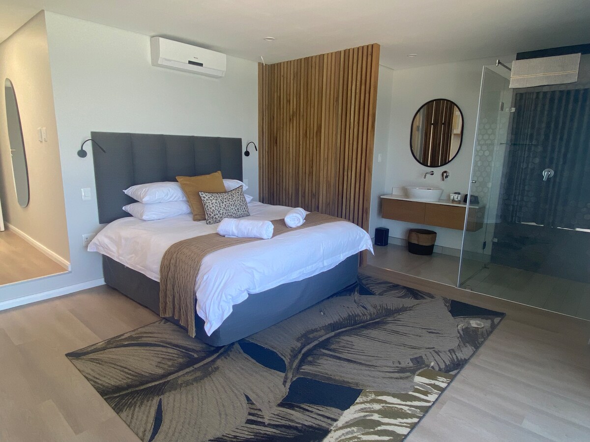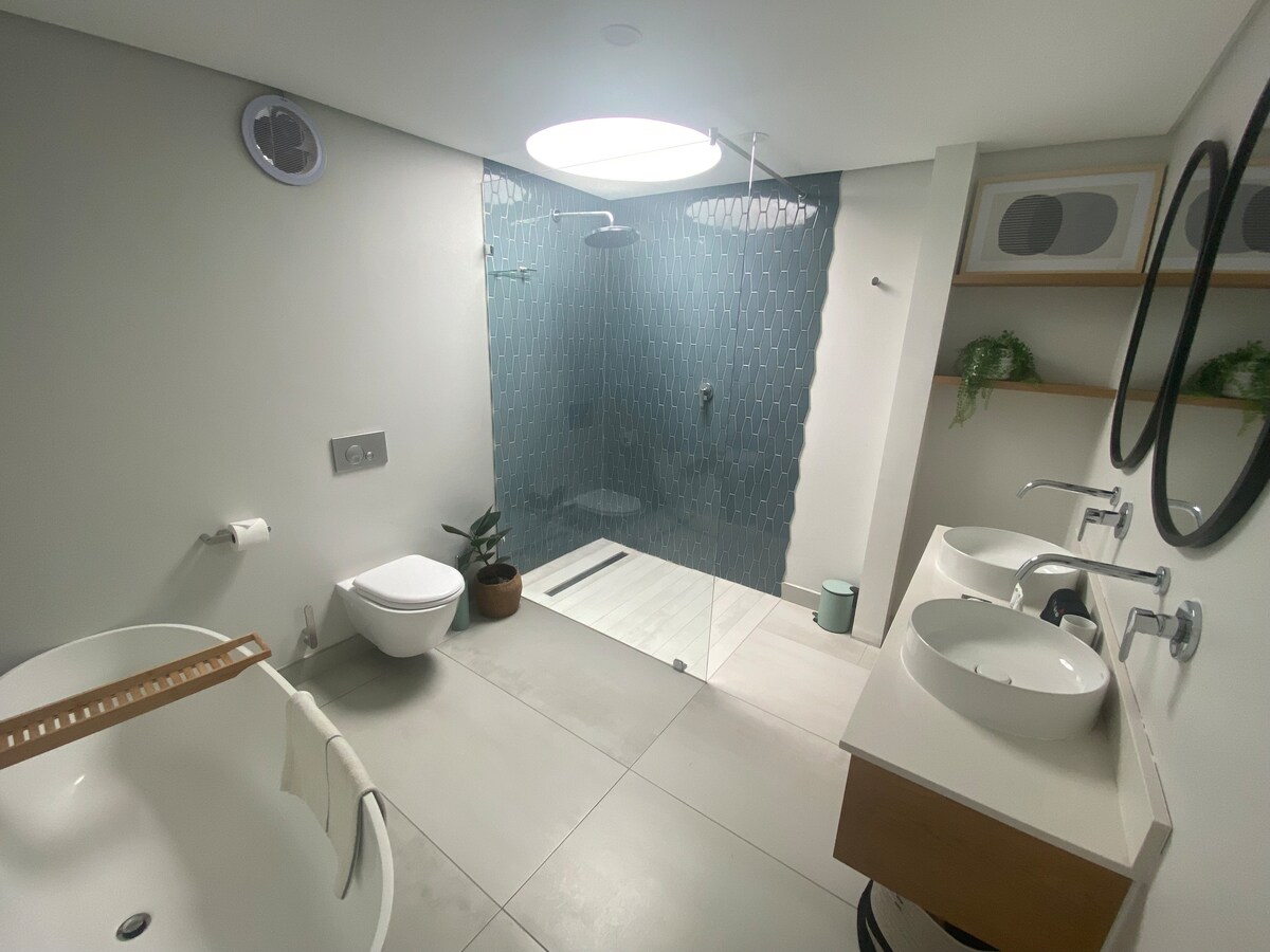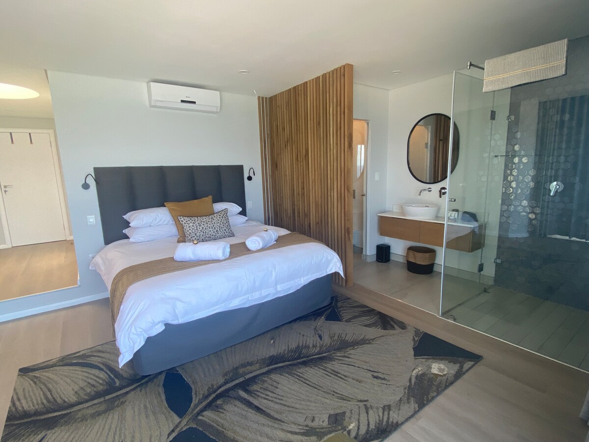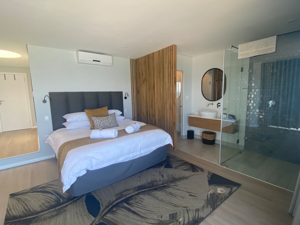 The stylish and modern master bedroom and bathroom has superb sea views and the other 2 bedrooms and bathroom are stylish and modern too.