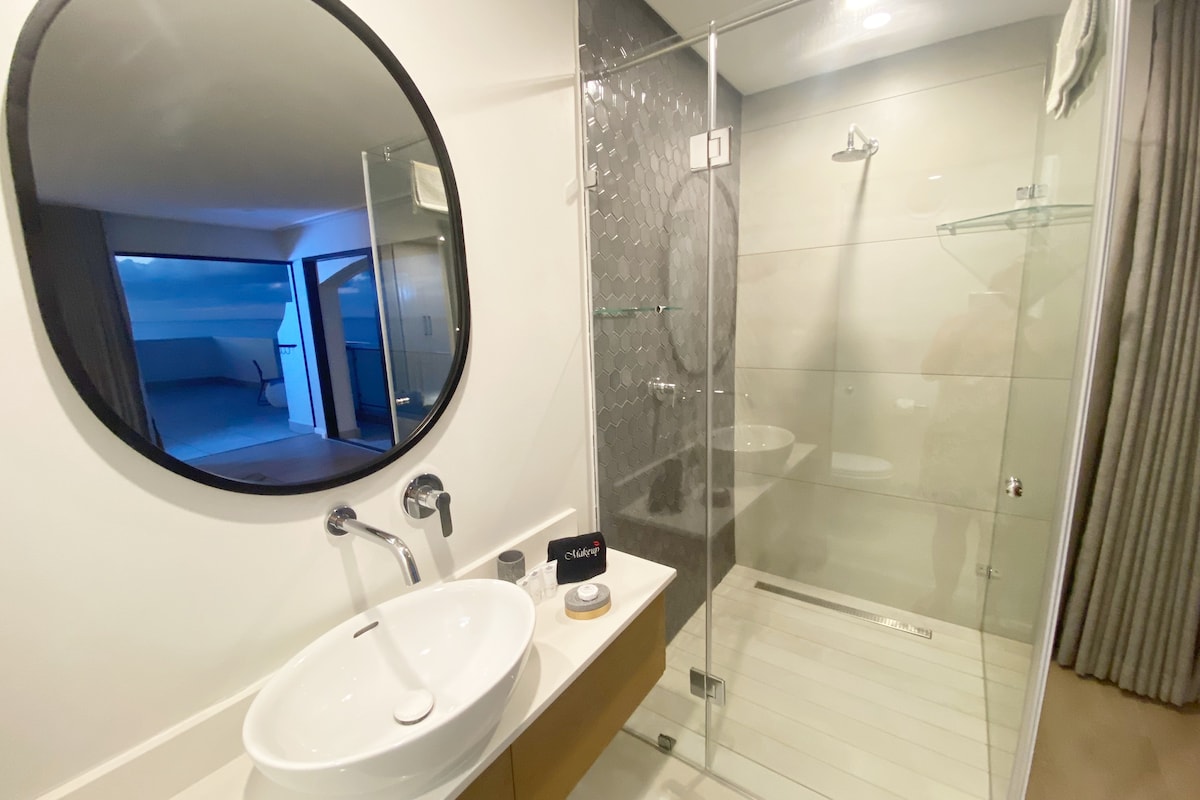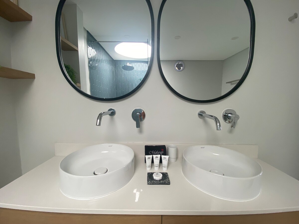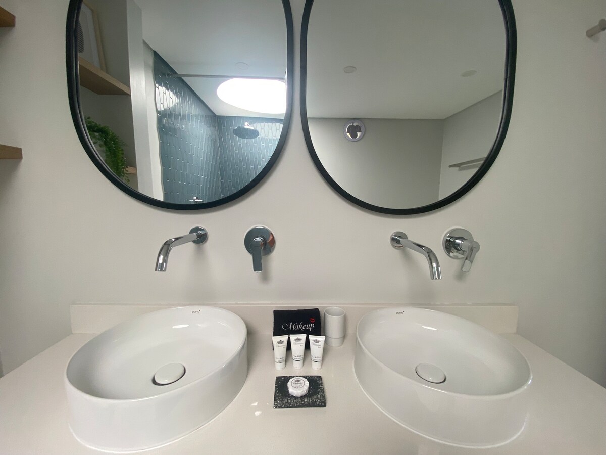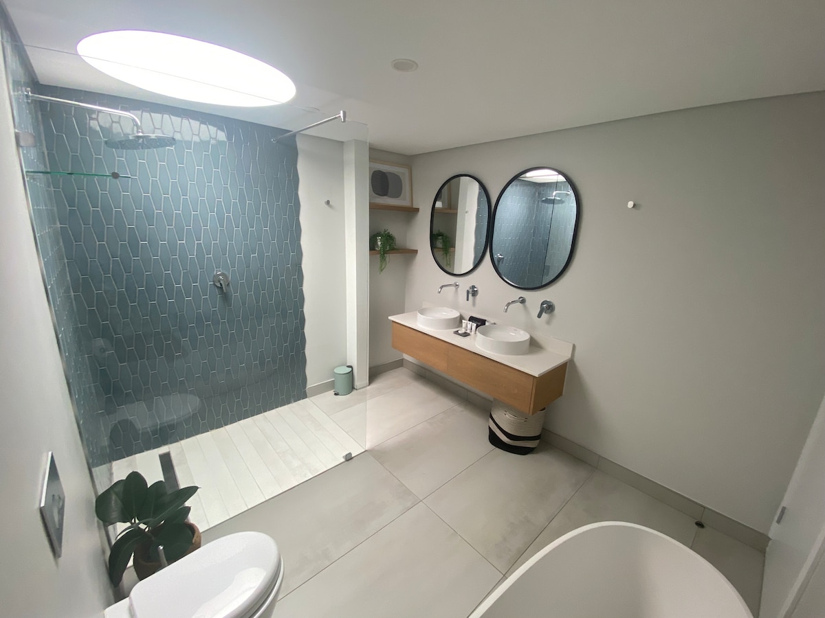 The stylish and modern master bedroom and bathroom has superb sea views and the other 2 bedrooms and bathroom are stylish and modern too.