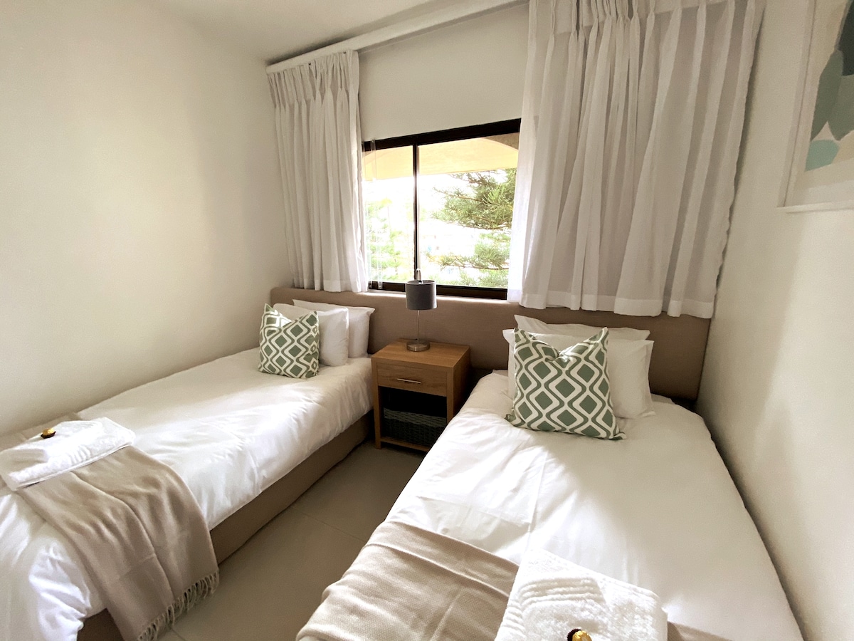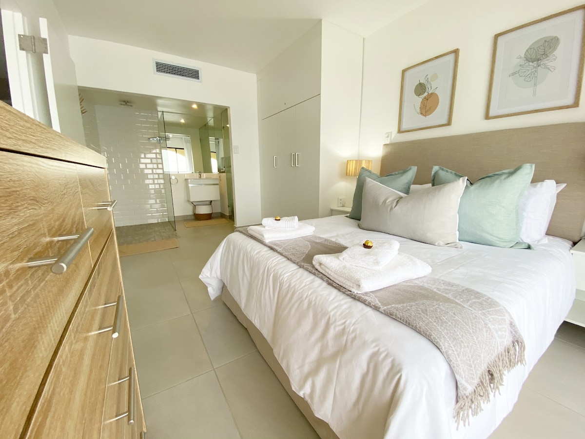 Overlooking Bronze Beach, it's a chic, modern, comfortable luxury up-market self-catering suite. The master bedroom boasts a large en-suite bathroom and magnificent ocean view. The single bedrooms share a modern bathroom with a shower. A modern fully fitted kitchen adjoins the dining room and open plan spacious plan living area which boasts a large screen smart tv and premium Dstv.