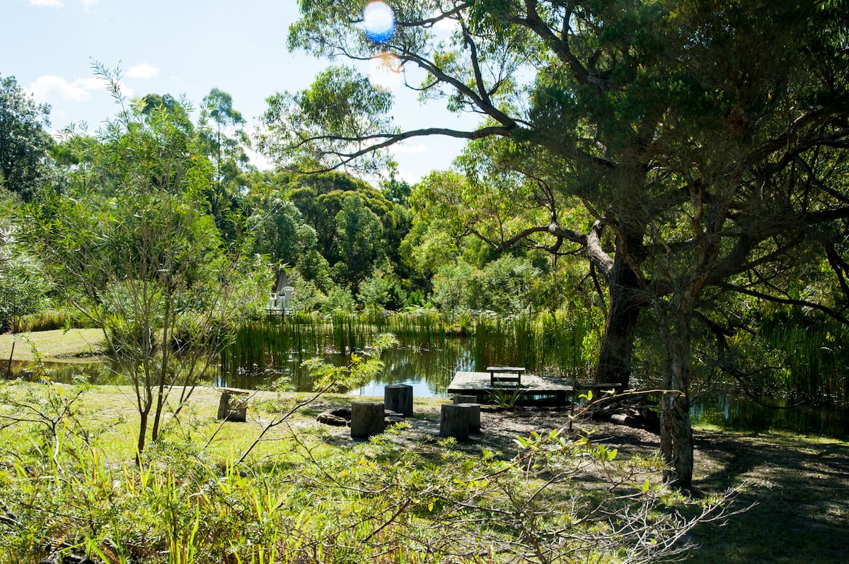 Mimosa Eco Retreat is located on the Bawley Point Road which turns off the Princess Highway at Termeil, in the southern Shoalhaven. This pet friendly paradise is nestled on 25 acres, just a short drive to unspoilt beaches and lakes, state forests, national and marine parks.Four fully equipped cottages are set in a private and peaceful landscape. Enjoy the beaches, lakes and parks, explore and dine, visit local attractions and have a camp fire under the stars. It’s bliss.