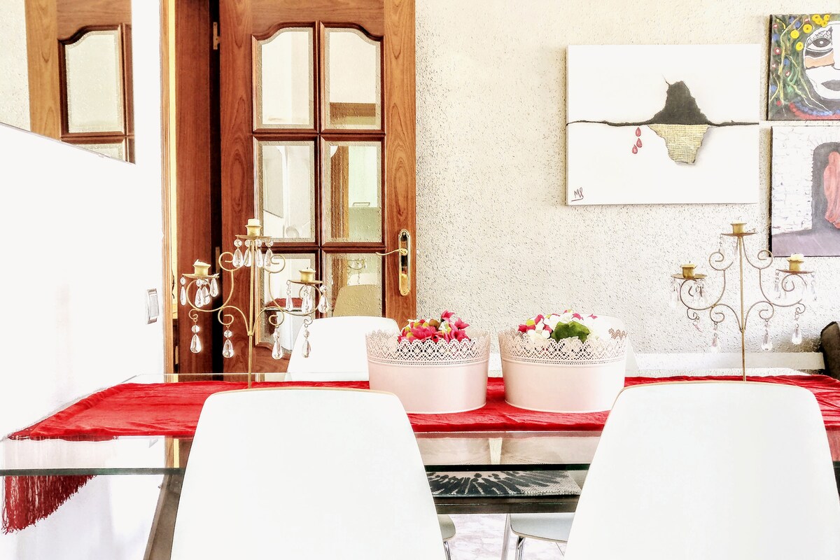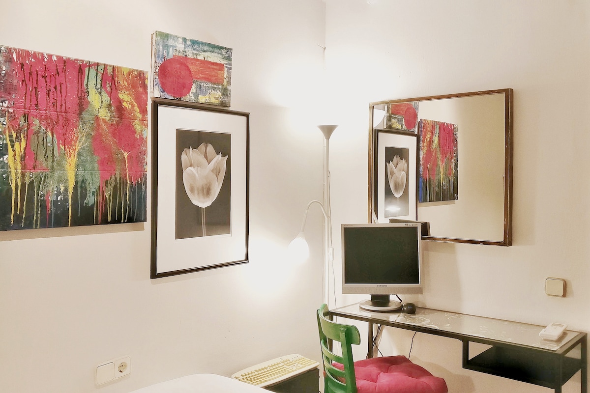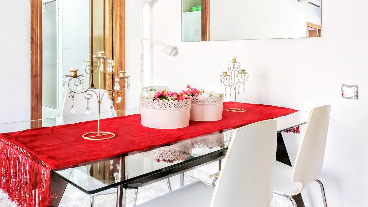 This is a great place - comfortable and well located. We were coming for a wedding and it was the perfect place to hang out during the day (conserving energy!) and then two bathrooms so we could all get ready. Also close to the centre - short taxi ride (under 10€ back from the centre) or about 20 mins walk. Also convenient for getting the Aerobus back to the airport