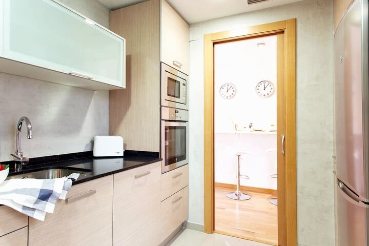 Fantastic experience with the apartment. Jaume and his staff are superbly efficient and responsive. The place is just as nice or nicer than the photos show. Very clean with all the amenities we need. The wifi was especially nice as it is very fast and easy to use. I was able to get work done and even stream video since there isn't a television in the bedrooms. The location is perfect for great shopping, sightseeing, and easy access to the entire city. Trains connecting to the airport are one block away and the rest of the metro lines are only a couple blocks farther. The corner market has very friendly attendants and we shopped there every day for breakfast and lunch needs. It's basic, but sufficient. I would definitely stay there again.