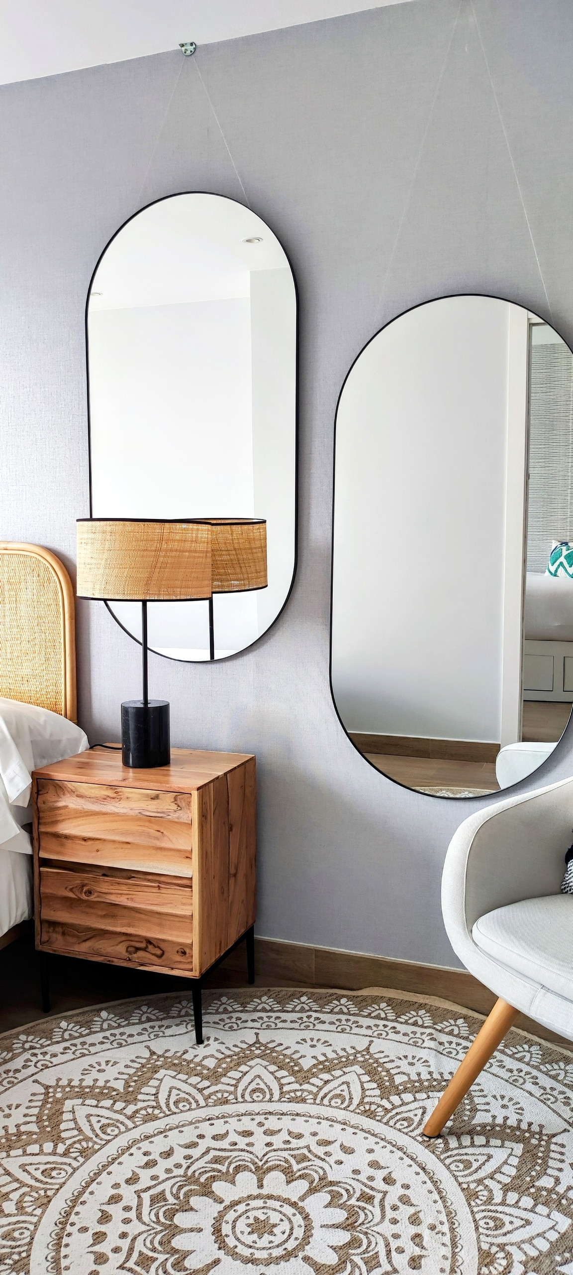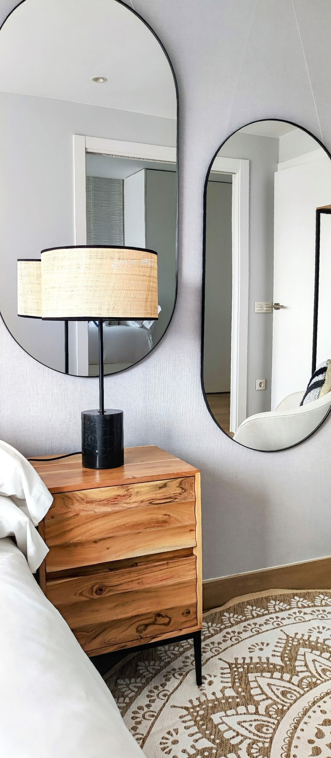 Interior lighting and a magnificent mirror.
