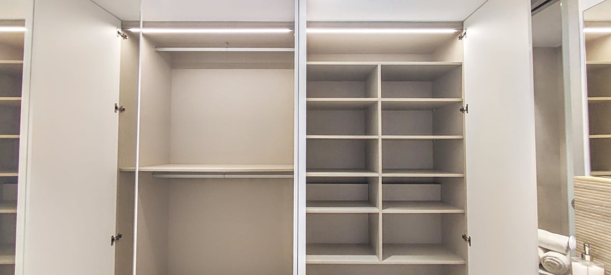 Dream dressing room with 8 double wardrobes.