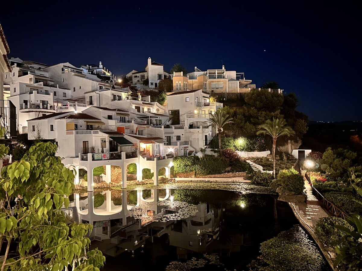 The location is fabulous in a beautiful development overlooking the sea with lovely landscaped grounds, ponds and waterfalls. It is close to the beach, the lovely town of Nerja, and many of the attractions we had planned for our vacation. There is a known problem with mold from moisture in the plaster walls, but apparently no-one has determined the cause or made any repair. The smell from under the sink and refrigerator is noxious. In general the apartment is well-equipped, but the bedroom is cramped, for example you can barely open the closet doors while standing between them and the bed. There is a cupboard in the hall with a know that is coming off. The living room rug was full of sand, but we just rolled it out of the way. The hot water is limited for two showers in a row.