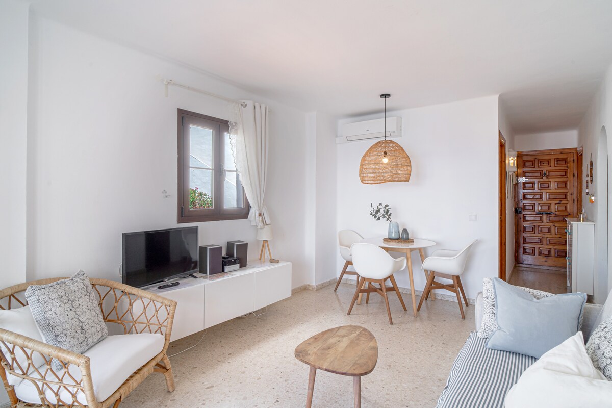 Wonderful holiday flat in the prestigious Capistrano Playa urbanisation in the charming town of Nerja. A cosy and elegant one bedroom flat, perfect for couples wishing to enjoy an unforgettable holiday.The bedroom is spacious and comfortable, with a comfortable double bed for a restful sleep. The living room is bright and relaxing, with panoramic views from the adjoining private terrace, where you can enjoy stunning views of Burriana beach, the sea and a picturesque lake nearby.