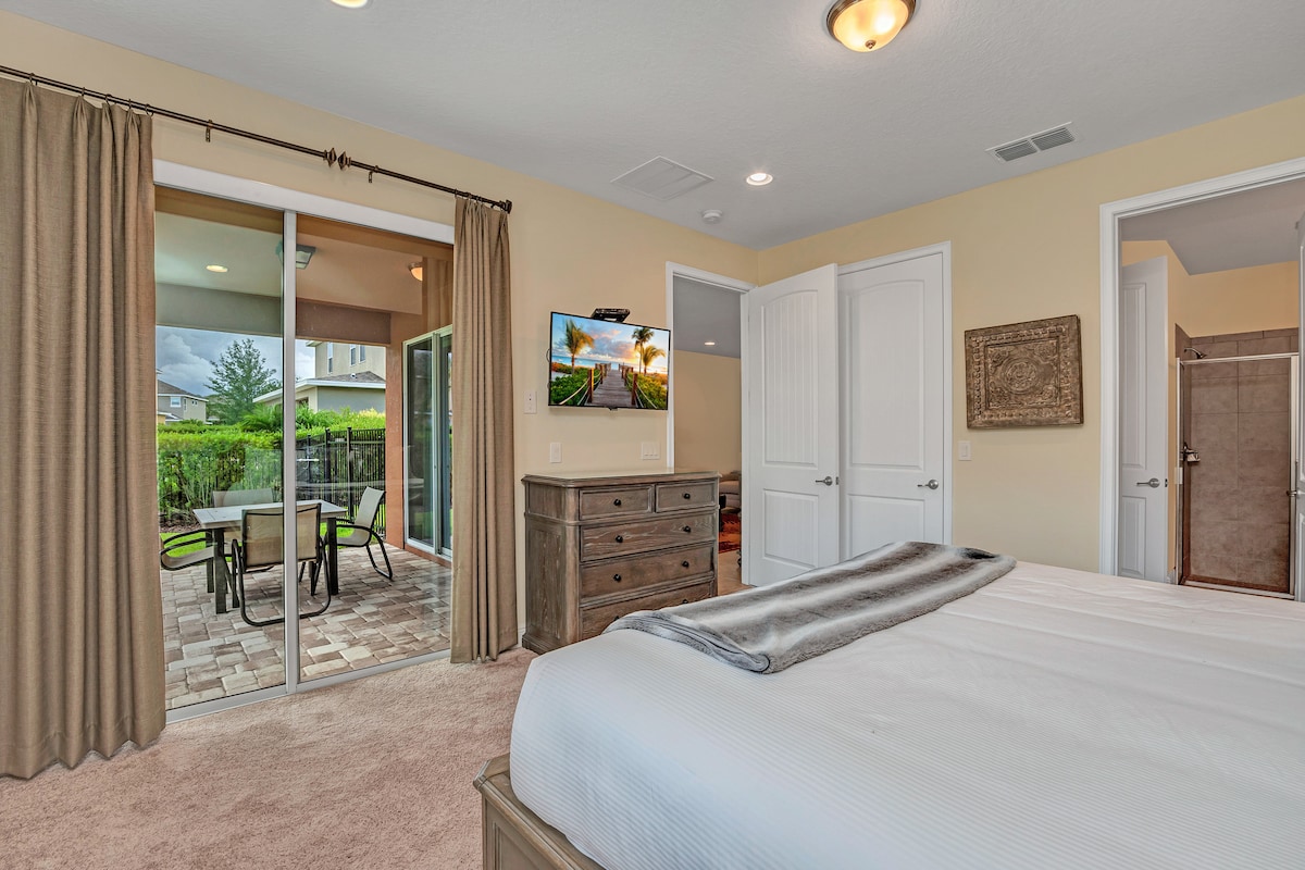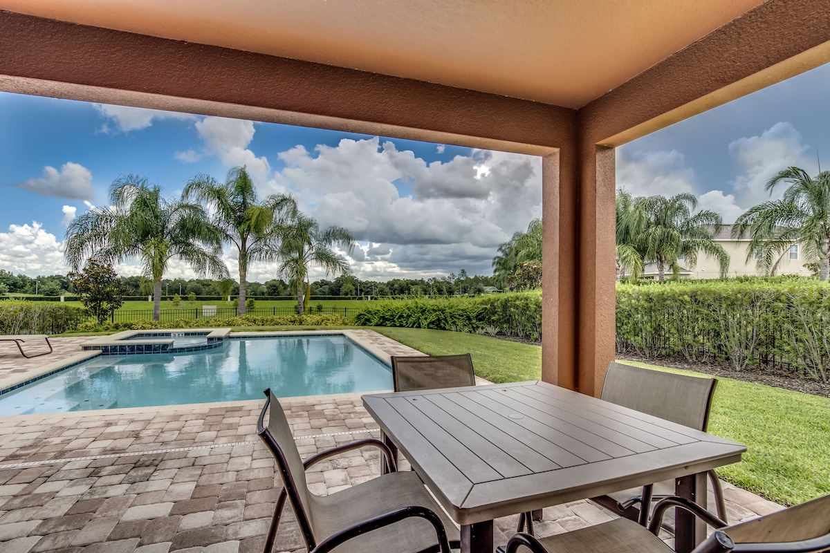 The property features a private patio perfect for relaxation. Guests can enjoy a refreshing swim in the private pool or utilize the outdoor furniture for dining al fresco. The outdoor area provides a serene retreat away from the excitement of nearby attractions.