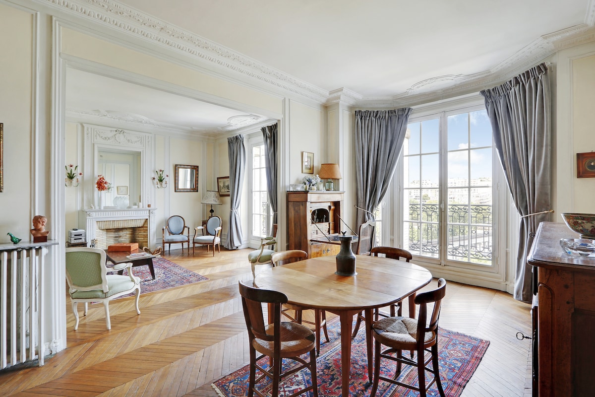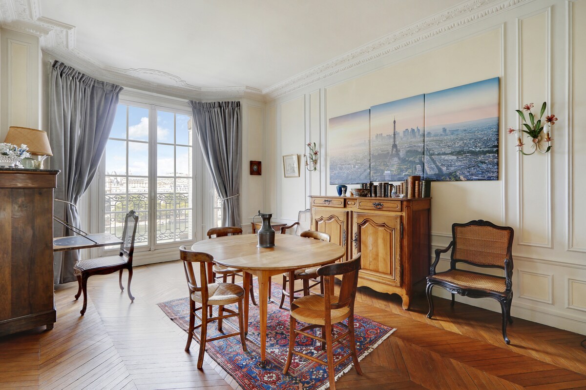 Directly on the the river Seine and by the Tour Eiffel this turn of the century apartment is quintessentially Paris.