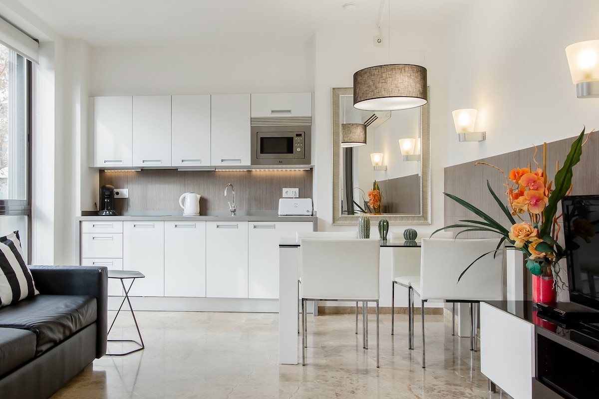 We had a very good time staying at the Picasso Suites. It was easy to get around the city from the apartment, it was beautifully clean and everything seemed brand new. We had the roof terrace to ourselves whenever we used it and everyone was very helpful. Highly recommended.