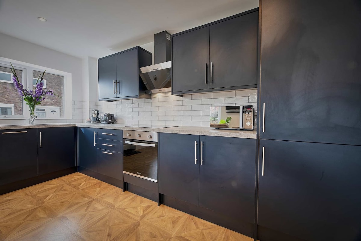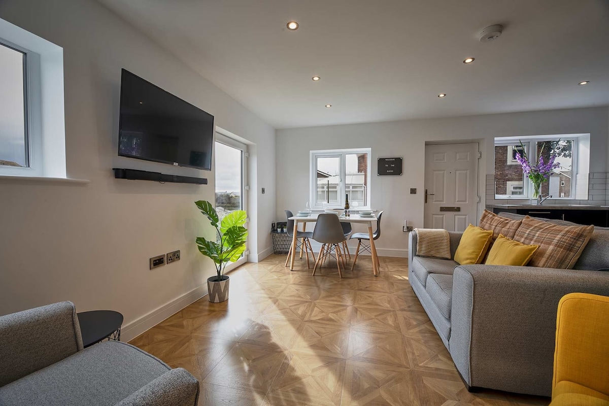 Upon entering The Bach, you’ll be impressed with its bright and modern look. Recently renovated to the highest standard, the house boasts premium furniture and luxury interiors. Perfect for socialising, the ground floor has an open plan kitchen, living and dining room.After a fun day at the beach, retreat to the living area with your loved ones for a cosy night in. Snuggle up on the sofa and turn on the flat screen TV to keep up with your favourite shows. Beautifully styled, the living area has a grey and mustard colour scheme with touches of tartan soft furnishings.
