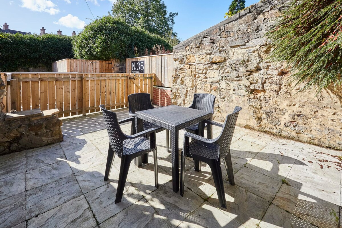 Outside there is a small yard with outdoor seating. Start your day with a coffee in the sunshine or enjoy a glass of something bubbly as the sun goes down.