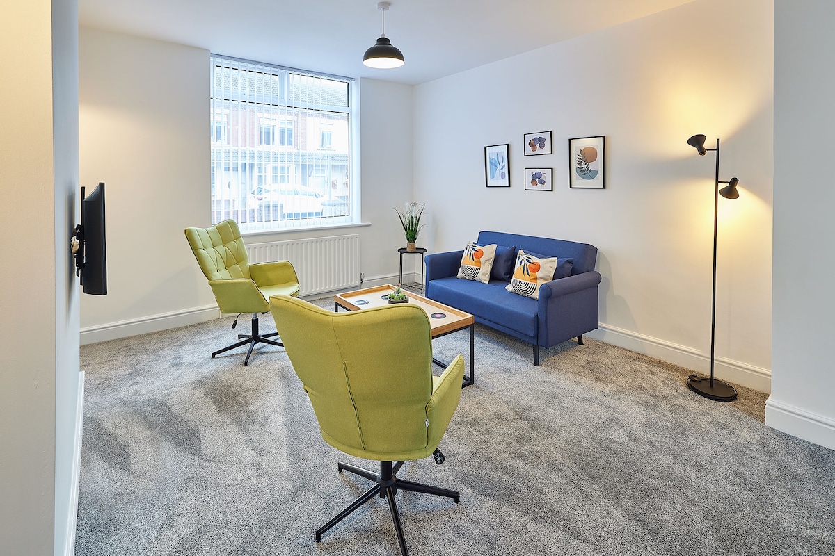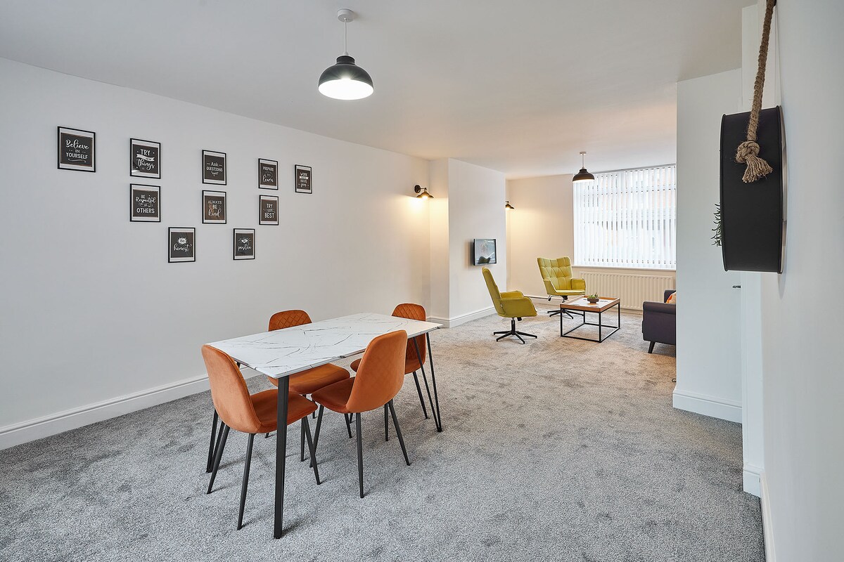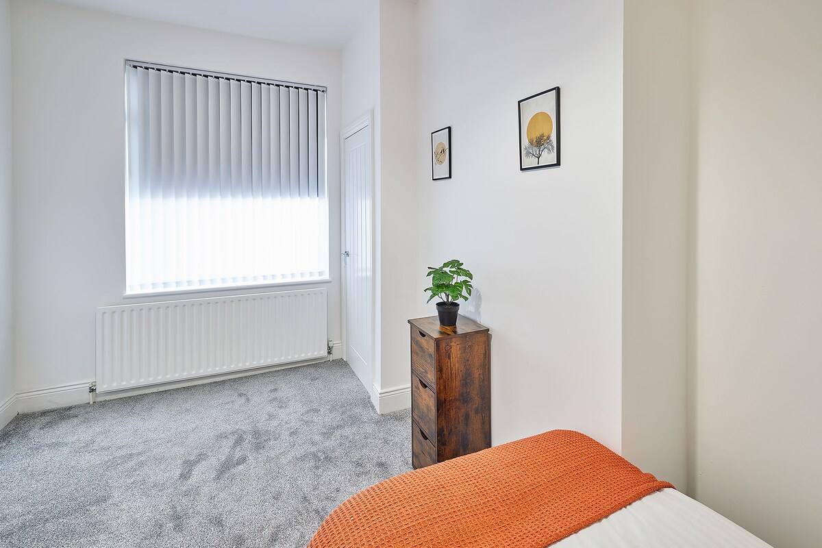 North Seaton Road has a welcoming and spacious living and dining room. There is a modern feel with a comfy sofa, two swivel armchairs and wall-mounted flatscreen TV making it perfect for unwinding with your loved ones.The kitchen is also located on the ground floor. Fully equipped, you’ll have everything you could need to prepare meals during your stay including an oven and hob, microwave, kettle, toaster, and fridge-freezer, plus the added bonus of a dishwasher.