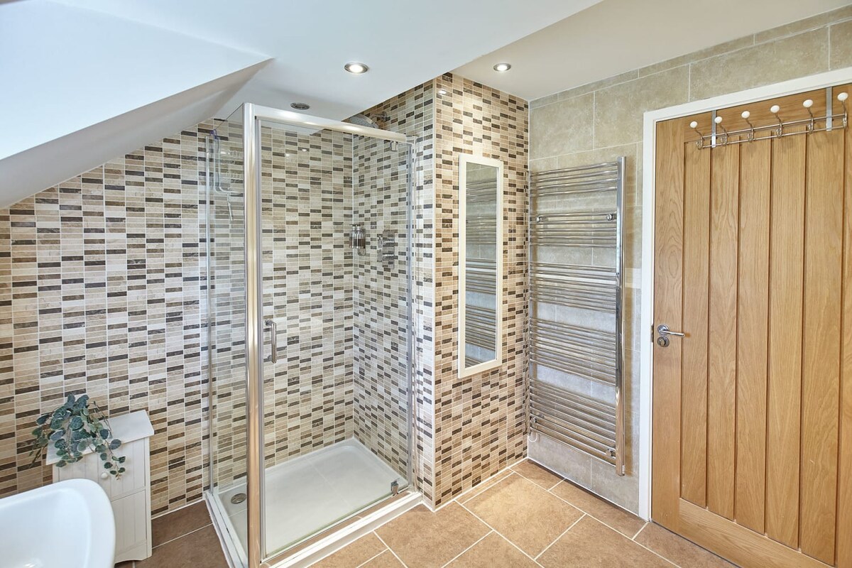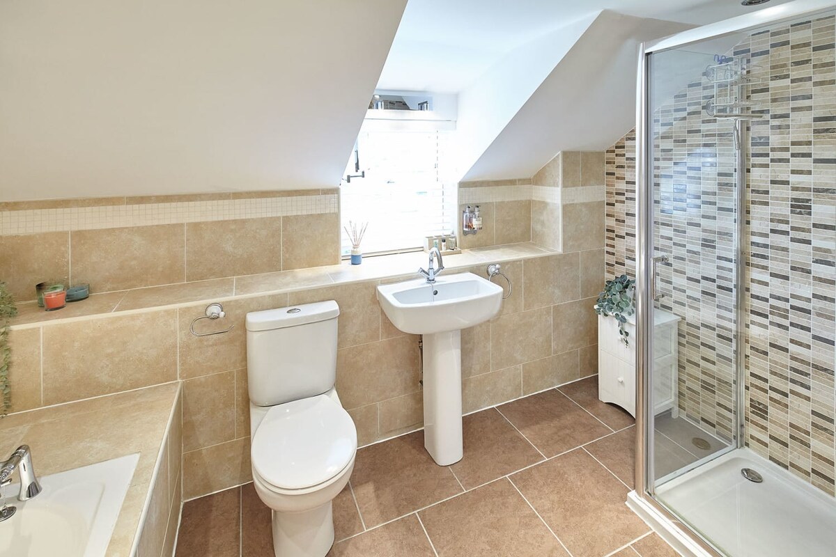 There are two family bathrooms at Doray House. The one on the ground floor is a good-sized shower room, also featuring a wash basin and WC. The first floor bathroom includes a bathtub, separate shower, WC and basin.