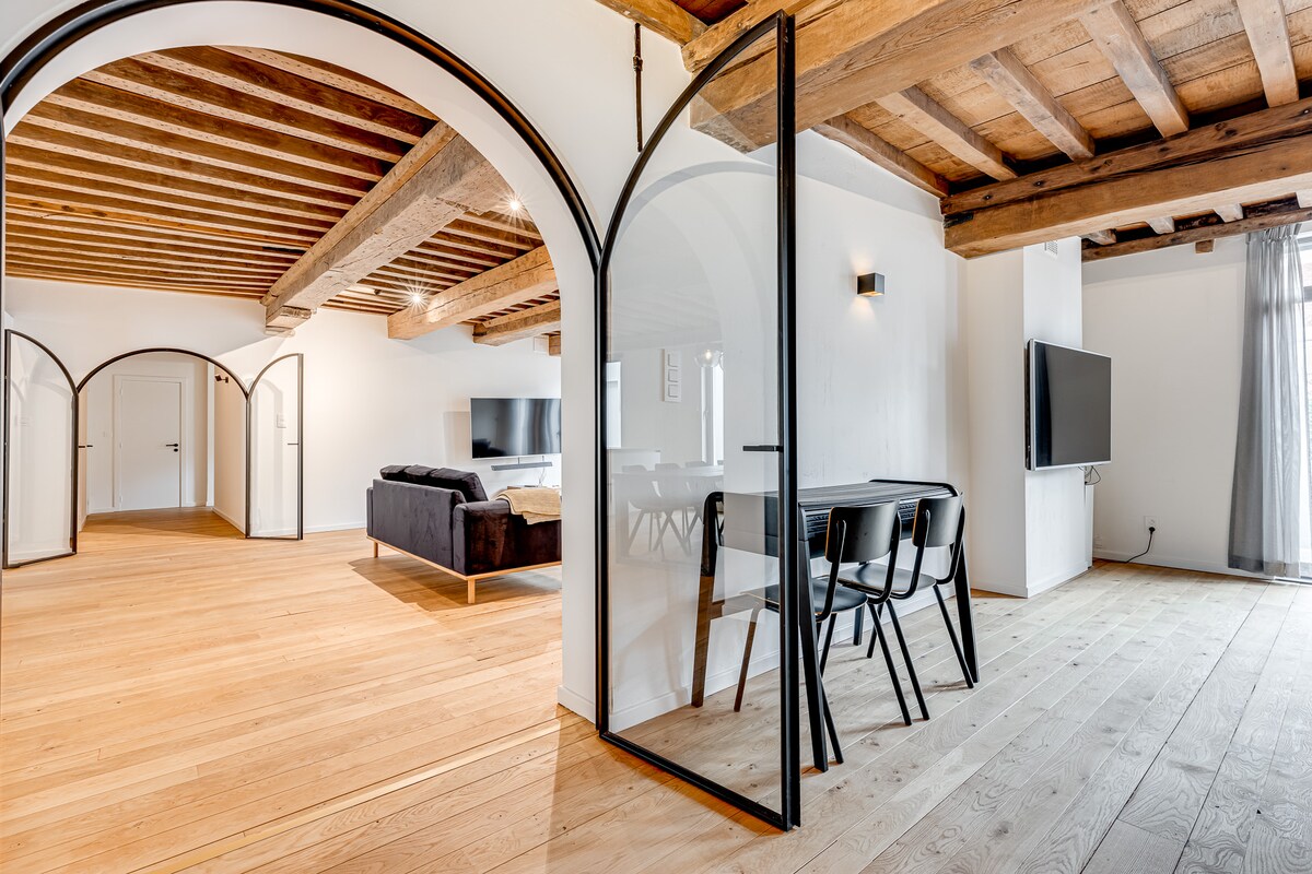 The loft greatly exceeded our expectations. The location can't be beat and we were able to walk everywhere we wanted to go. Our 4 year old had lots of space to run around (think of it as 3 units mashed into one). Fantastic remodel, with exposed beams and some original features adding to the charm of the unit. High end appliances. The Philips TVs had cool Ambilight built-in and enhanced the experience. Given that we were unfamiliar with European standards, it took us a while to figure out some stuff in the house but that's the fun part! Examples: we thought there was no microwave, but the top oven doubled as a microwave when you tinker with the settings. We found out that there were motorized retractable awnings for the patio controlled by the Somfy remotes. Another: the window knobs have 3 positions: closed / swing open / tilt open. Overall a definite 5-star, and we would gladly stay again!
