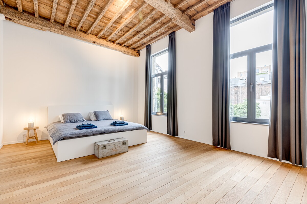 Welcome to your tranquil retreat in the heart of Antwerp's enchanting city center! Nestled within the historic remnants of a 15th-century abbey, this 200m2 loft offers a serene escape from the bustling city streets. Step inside to discover a modern oasis boasting three bedrooms and three bathrooms, ideal for families or groups seeking comfort and convenience.- Spacious Living Area:
