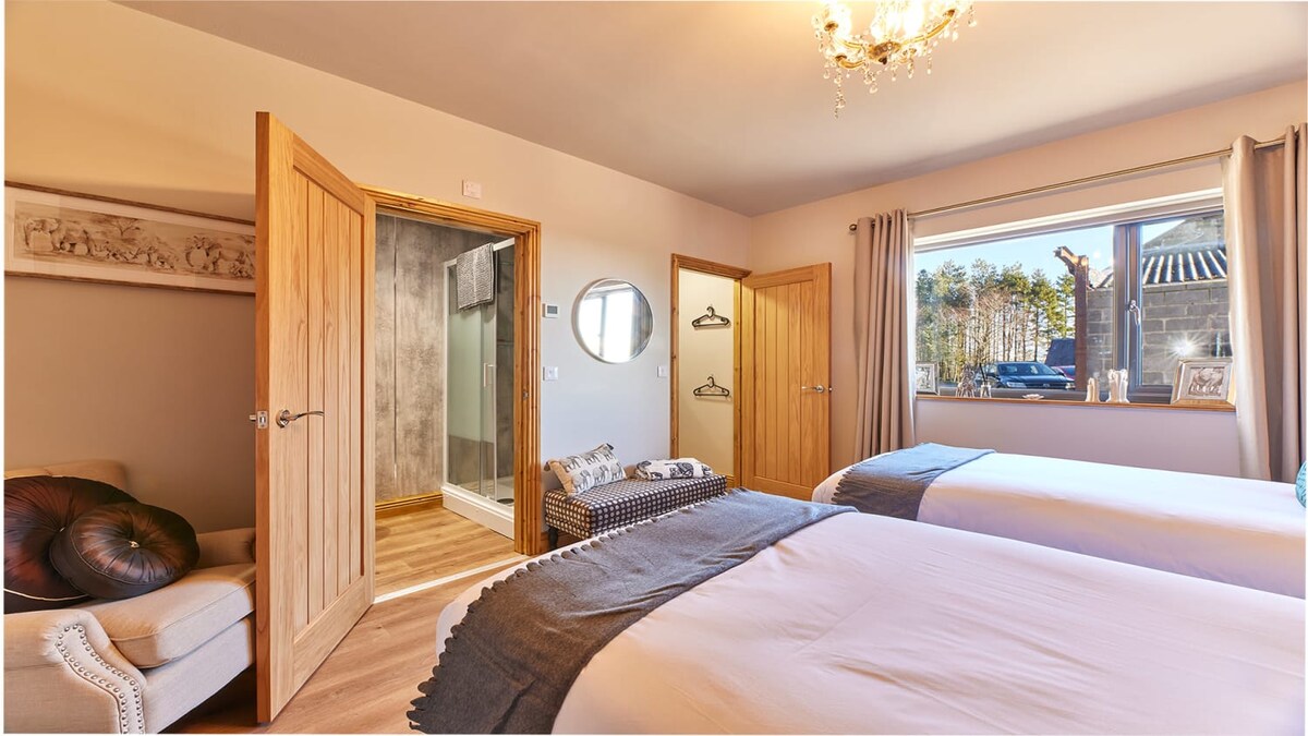 Each of the bedrooms has a super king-sized bed, all of which come with the plushest pillows and luscious bed linens to give you the best night’s sleep. If requested on booking we can have the super-kings made up into large singles for your stay.