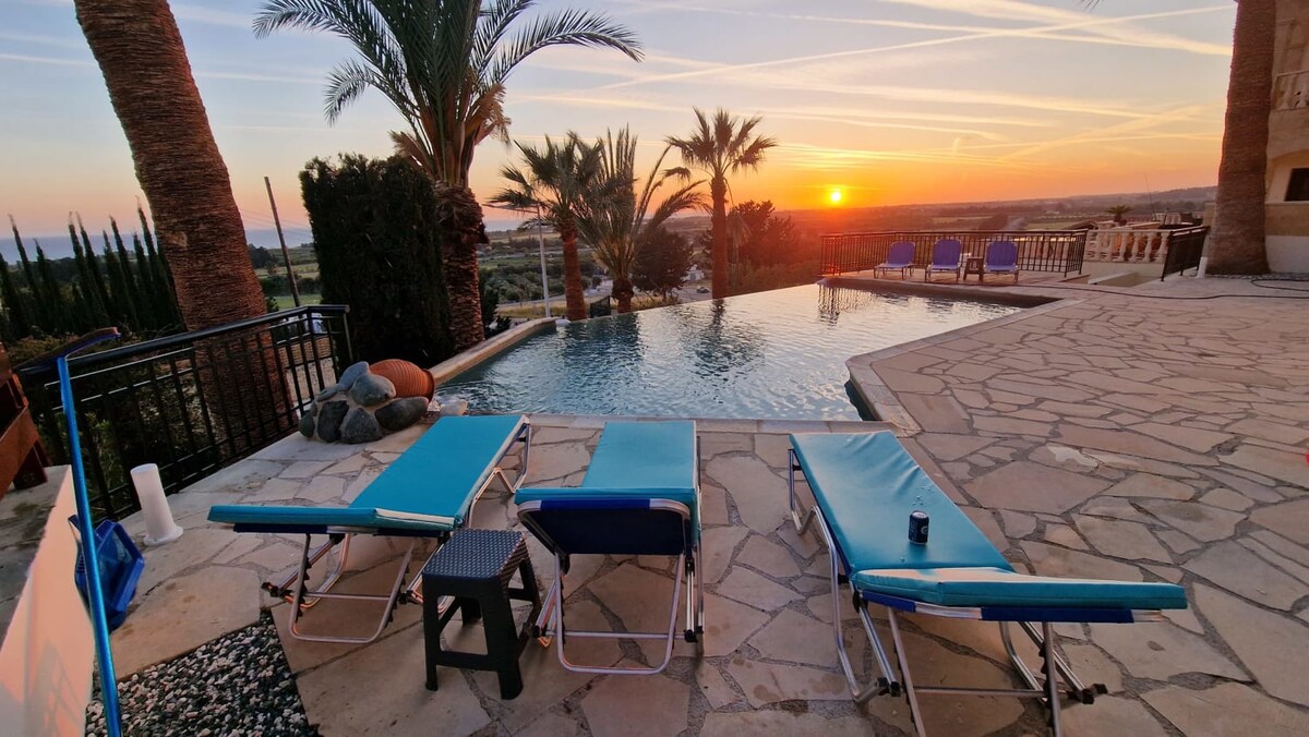 Set in Kouklia, Sunset Villa offers accommodation with a private infinity pool and free WiFi. Built in 2012, the property features air conditioning throughout and breathtaking sea views from all rooms. Situated a short distance from the cities of Paphos and Limassol, the villa has plenty of outdoor space to boast about where you can enjoy gorgeous sunsets every evening. Sleeping up to six guests across three bedrooms, Sunset Villa is equipped with everything you need for a holiday in Cyprus.