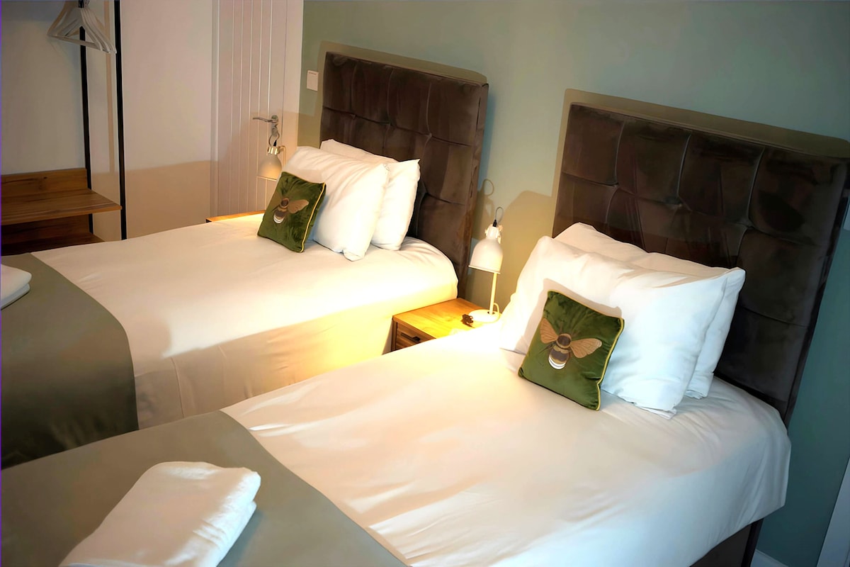 Take the stairs up to the second floor and you’ll find two bedrooms. The master bedroom has a comfortable king-size bed, and the second bedroom is a super-king, however this bed can also be split into two singles upon request. Both beds boast plush bedding and premium bed linens for a comfortable night's sleep.