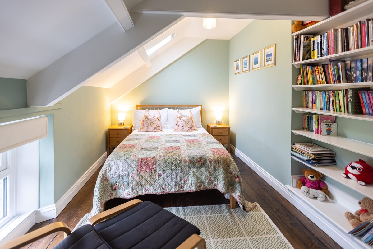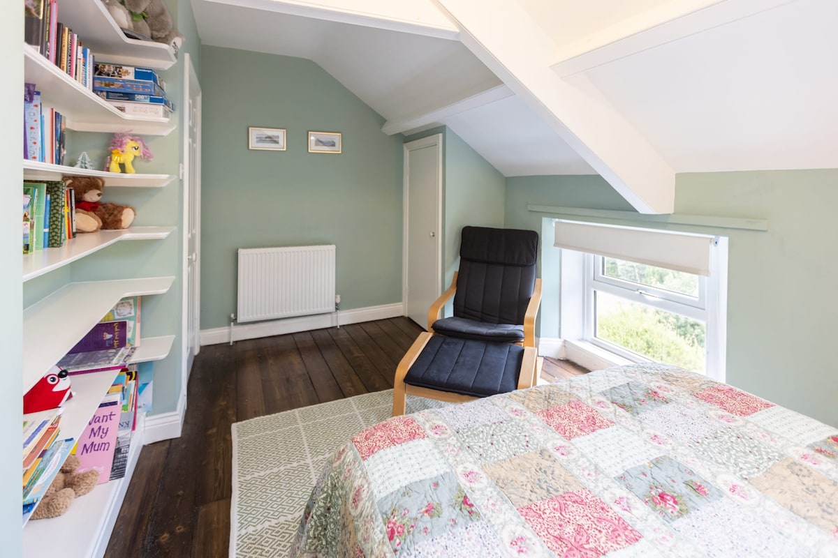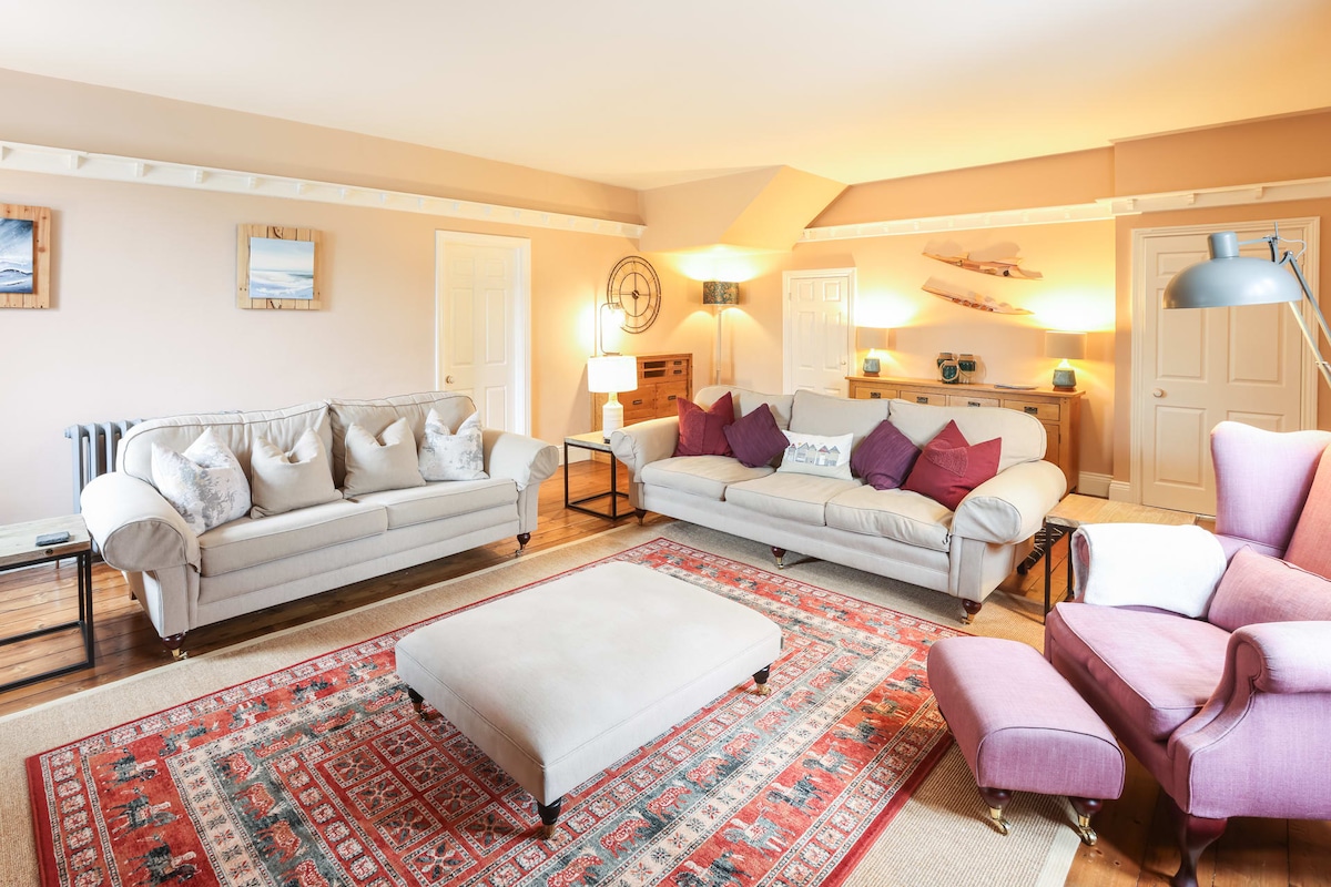 Old Reading Room oozes character and charm throughout its spacious rooms. Retaining many features of the historic past, including beams and wooden floors, it is bursting with elegance and makes the perfect holiday let to gather with friends and family.The beautiful and impressively spacious living room has a feature fireplace housing an attractive wood burner, with period plate shelving around all the walls, used as storage for books. This is a delightful room and the hub of the home.