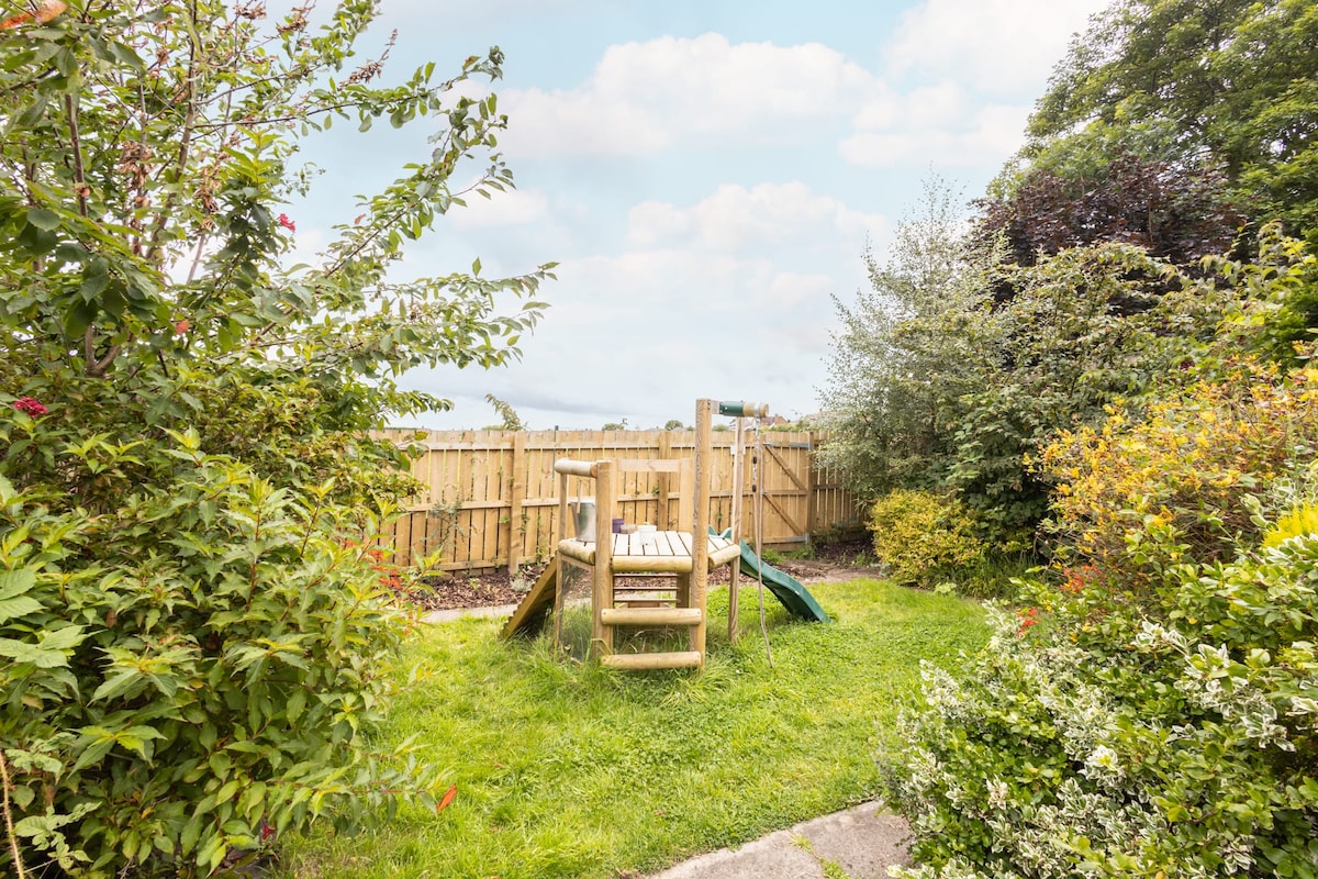 Outside a large, south facing garden where you can bask in the early morning sunshine on a beautiful summer day or enjoy a refreshing breeze on cooler days. In terms of amenities, you’ll find garden furniture and a kid’s playhouse.