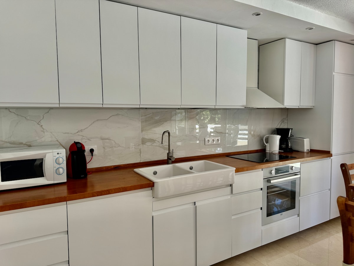 150m2 fully fitted and equipped kitchen, Air con, fibre optic WIFI, flat screen smart TV.