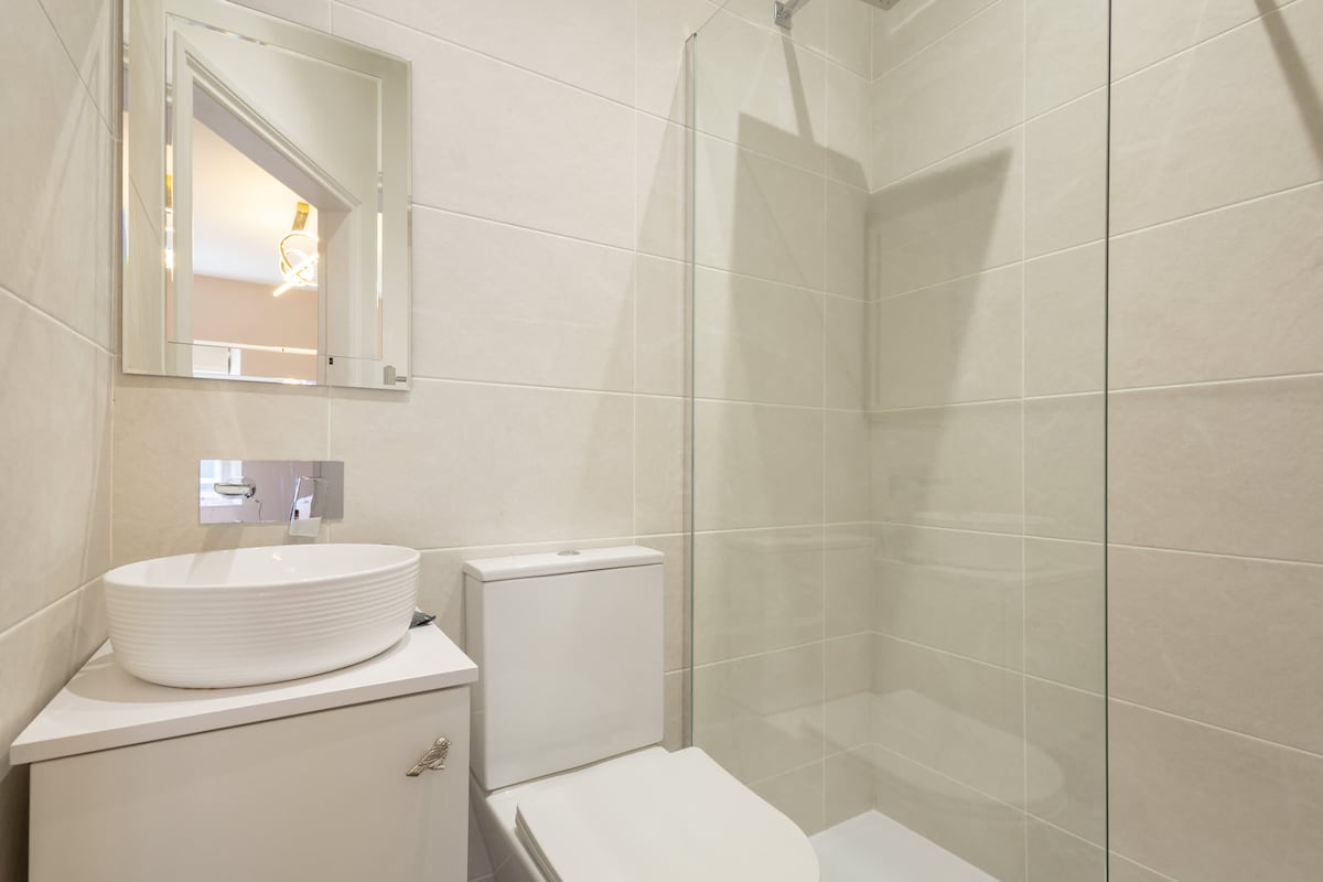 It boasts plenty of natural light, thanks to a floor-to-ceiling window in the main living room and large windows in the bedrooms combined with a neutral colour scheme to create a bright and airy ambience. Beautifully designed with modern furnishings throughout, the property features carpet flooring in the bedrooms and hardwood floors in the secondary living area and kitchen. Fresh light walls are perfectly complemented by wooden and soft-coloured furniture to give a modern look.