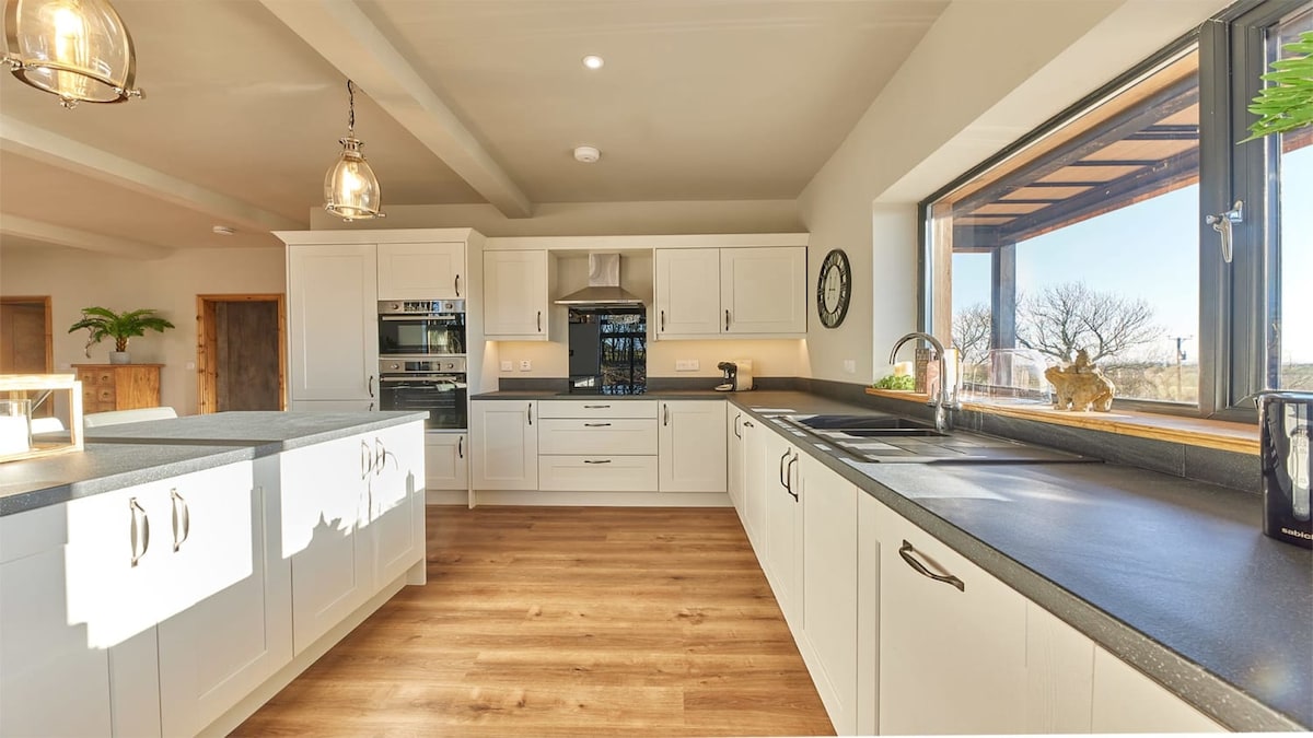 The place was spacious and stylish and it was located in a peaceful location. The views of the stunning countryside were spectacular and was so nice to wake up to from the upstairs bedroom. The kitchen was clean and well equipped. We had a power cut on day 2 and the WiFi went off. We contacted host and stay and within the hour it was sorted by the owner. The hot tub was so relaxing and made our stay so relaxing. Will definitely be back