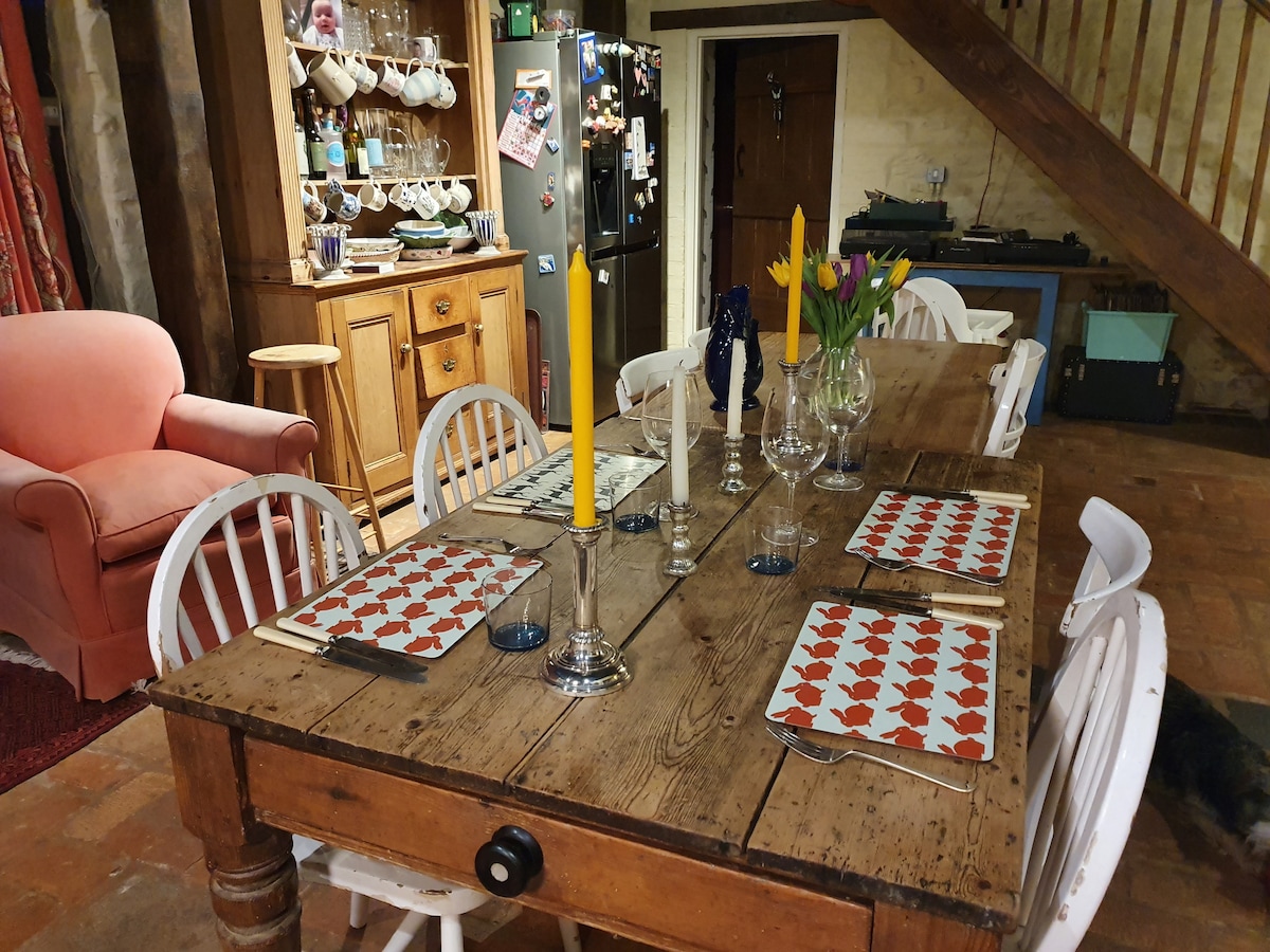 We have a lovely middle sitting room with wood burning stove and TV, two offices if you need to have some quiet laptop time, a playroom for the kids and teenagers with babby-foot and a piano. A large eat-in kitchen/diner with an AGA and wood burning stove and a table that can comfortably sit 10.