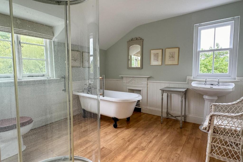 Lots of character and charm this is a much loved family home. 5 bedrooms. The Master bedroom has a wonderful balcony with views as far as the eye can see! There are 3 bathrooms. Roll-top Bath and shower in the family bathroom, shower en-suite in the single bedroom and an en-suite for the Master.